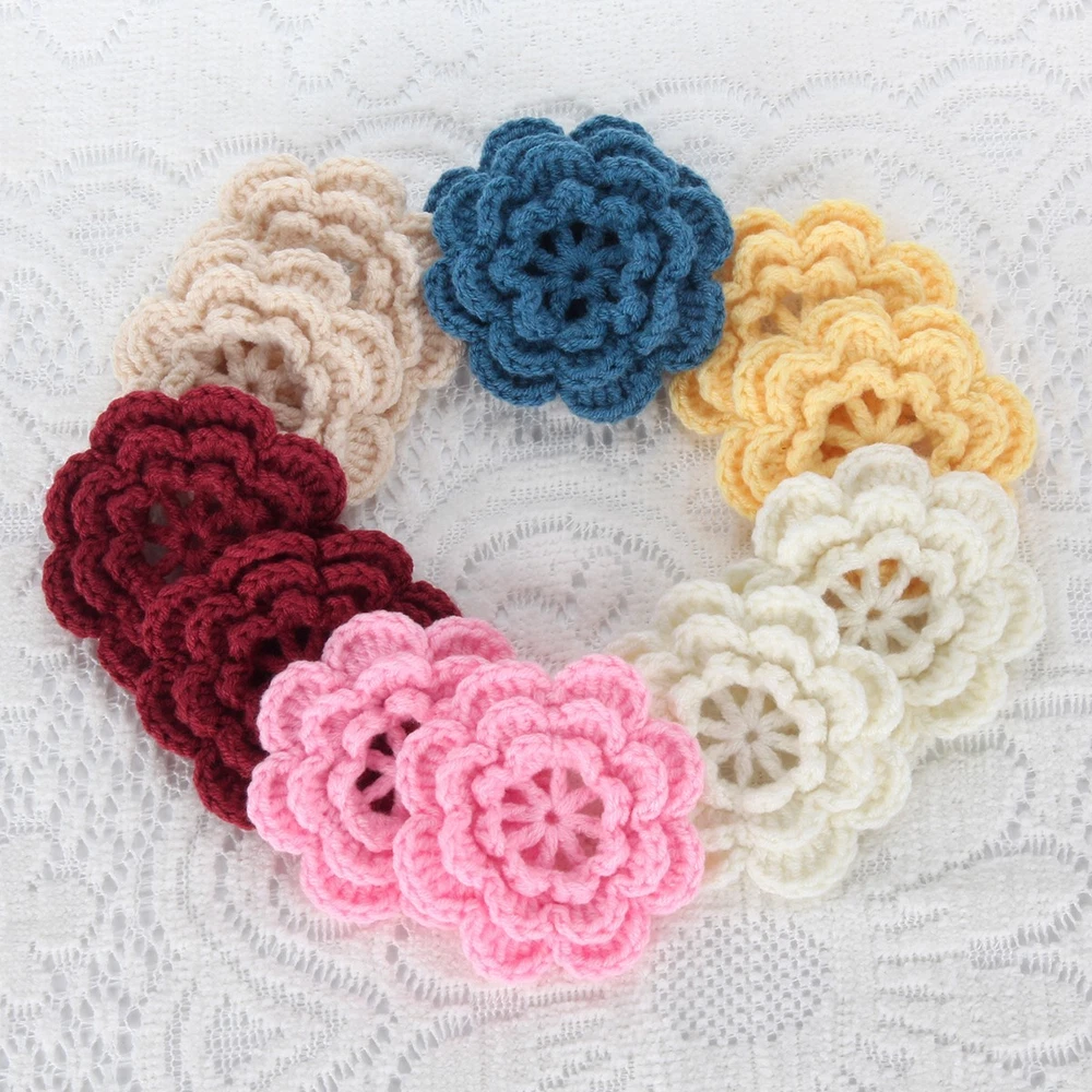 20 pieces of crochet flowers in various colors, simple and elegant, to meet your different needs for flower DIY craft projects, Each flower is approximately 3.1 inches/8cm in diameter. These knitted flowers are handmade from cotton yarn, which is soft, delicate and tear-resistant, light and gorgeous 8 petals flower, 3 layers three-dimensional design, flat back design, easy to use, just sew the flower to your craft or stick some glue or sticky dots on the back of the flower, then attach them to your craft project. Crochet flower decorations are great for sewing, crafts, clothing, bags, card making and more Crochet flowers can be used to make beautiful cards or put in your scrapbook It's perfect for craft projects like paper projects and hair gear; You can use it as a cute flower holder in weddings, party supplies, DIY crafts, boutique accessories or designs