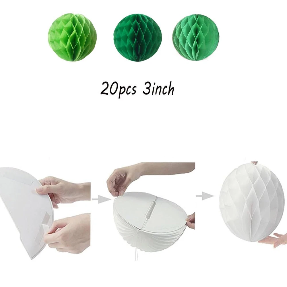 Product Description: Quantity: 20pcs Colors: 20pcs single color and multicolor Size: Approx diameter 3 inch. Honeycomb Balls Features and Occasion: Each paper honeycomb is easy to put together and hanging. Hand made using premium paper. They are easy to hang them on the ceiling, table). They are fit for Girl’s room, home decoration, children game,birthday parties, weddings, bridal, baby showers, Christmas, Xmas, Thanksgiving Day, Father's Day, Mother's Day, nursery, festival, celebration,or any special event goes well with other party decor. Totally 20pcs 3inch green set honeycomb balls,mini flower balls, small honeycomb balls, cute paper balls for decorations green honeycomb balls for Christmas They are easy to put together which flat packed ready to unfold and hang string attached. These flower balls also are fold out halfway and stick to the wall , they are easy to match with other flowers garland for wall backdrop DIY handmade brings so much fun, it will inspire your imagination and creativity to design or decorate party, home decorations or children game, birthday, wedding Different color for different style theme decoarion, choosing the best one for you, they are fit for Girl’s room, home decoration, children game,birthday parties, weddings, bridal, baby showers or any special event goes well with other party decor
