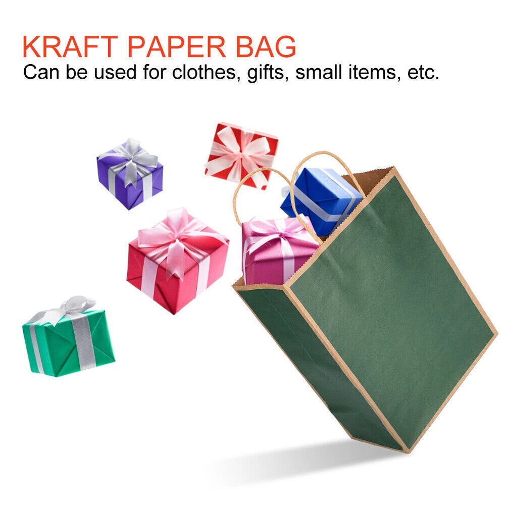 Feature: 1. Environmentally friendly kraft paper bags are different from other plastic grocery bags in that they can be reused, which is environmentally friendly. 2. Kraft paper has high elasticity and tear resistance, which is very suitable for products that require strong, powerful and durable bags. 3. Highly functional and can be used for clothes, gifts, small items, etc. 4. Can be used as a Christmas present bag, a Valentine’s bag for the kid to put candies in. 5. Including 20pcs of the package, meeting your different needs. Specification: Condition: Brand New Item Type: Kraft Paper Bag Material: Kraft Paper Optional Color: Dark Green, Dark Black, Dark Red Size: Approx. 21 x 11 x 27.5cm / 8.3 x 4.3 x 10.8in Package List: 20 x Kraft Paper Bag