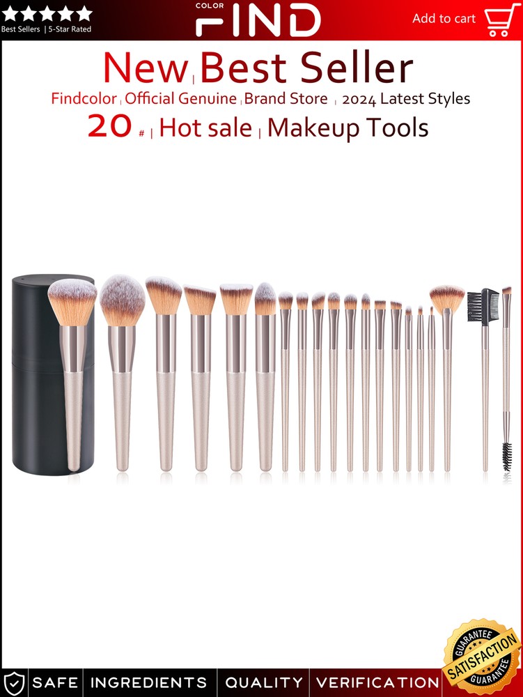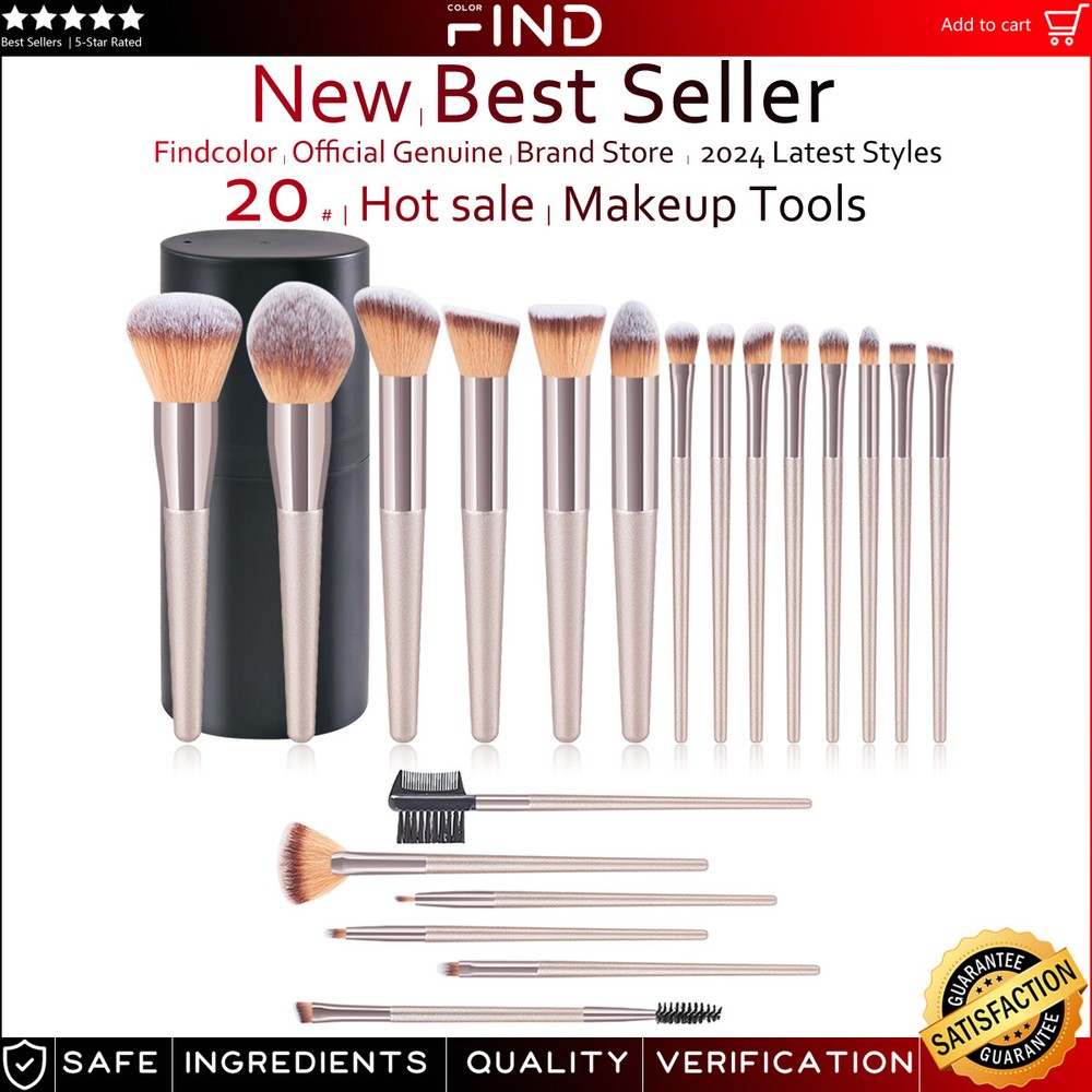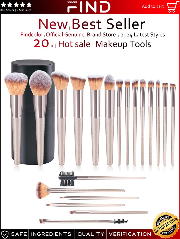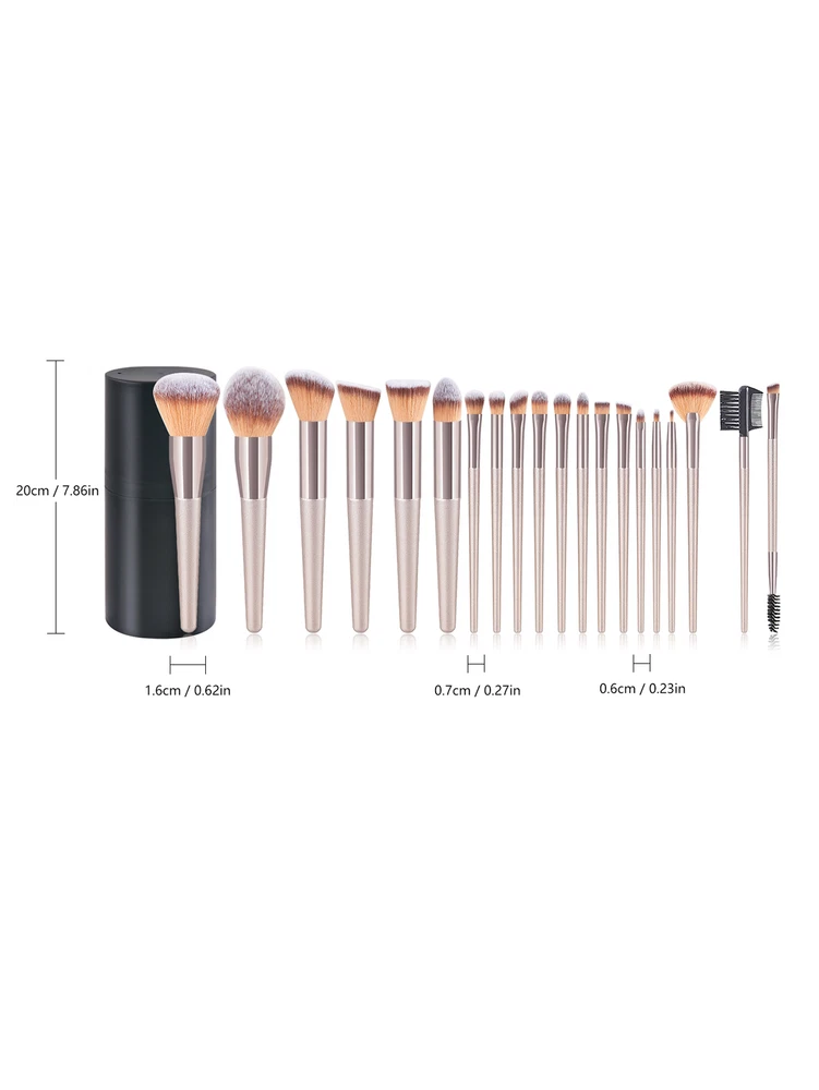 20pcs Pro Champagne Soft Eyebrow Shadow Makeup Brush Set + Brush Holder
