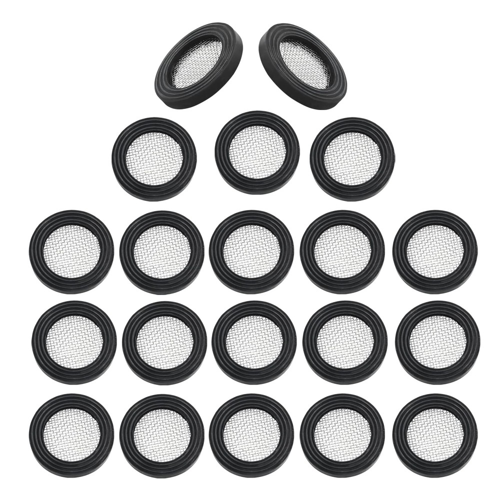 Fits firmly and snugly in irrigation system, garden hose equipment, the water screen filter effectively filter the dirt, sand mixture out. Easy to install and seal well with rubber washer and tabs around in faucet fittings. Specifications: Outer Diameter: 1"/25mm Mesh Diameter: 0.63"/16mm Thickness: 0.12"/3mm Mesh: 40 Mesh Material: Stainless Steel, Rubber Color: Black, Silver Quantity: 20 Pieces Note: Due to manual measurement, please allow a deviation of 1 - 2mm. Please check our product size carefully and read the product size descriptions before purchasing to avoid possible unpleasant shopping experience. Package Included: 20 x 40 Mesh Water Hose Screen. OD: 1"/25mm, Mesh Diameter: 0.63"/16mm, Thickness: 0.12"/3mm. Durable: Constructed with stainless steel mesh and rubber ring, the washer hose filter is sturdy, rustproof and wear resistant. Easy to Install: Fits for standard 3/4 inch garden hose faucet connector, the hose inlet strainer works effectively and firmly by inserting inside the fittings. Functional Mesh Washer: Universal mesh washer hose filter is a practical hose screens for water filter screen and water faucet washers. Satisfaction Oriented: If you don't absolutely love them let us know and we will strive to improve your shopping experience! We are so confident you will love our products.