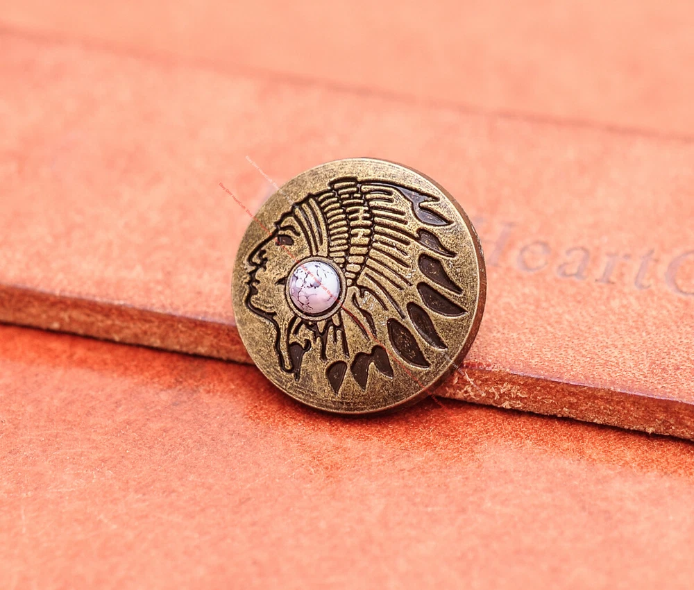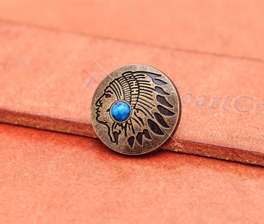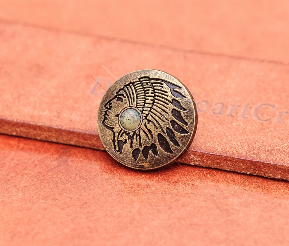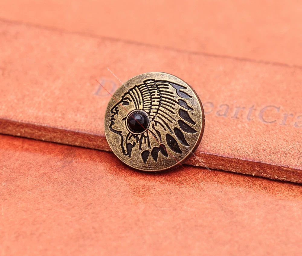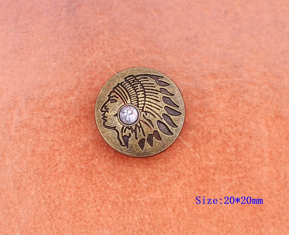 20x Brass Indian Head Leathercraft Turquoise Snap Button Closures Connector 20x Brass Indian Head Leathercraft Turquoise Snap Button Closures Connector Suitable For: Belts, Handbags, Hats, Jackets, Knife Shealths, Pouches, Saddles, Shoes, leather craft, clothes, craft,etc.. We have lots of conchos in my shop .Pls visit my store。pls add my store to your favorite shop.Thank you very much. Product: HORSE SADDLE LEATHERCRAFT CONCHOS Material: Metal alloy Color: Please refer to pictures Size: 20*20mm approx. Component: 20pcs/ set. *Under different light conditions, color may looks different. WARNING: The picture of the product all have copyright .All rights reserved, pirates must investigate. 盗图一经发现,一律追究法律责任,绝不和解 。 Payment Delivery details Contact us Terms of sale About us Payment *Please complete payment via PayPal. *If you buy more than one item, please wait for combined invoice to get shipping discount. *Please make sure your shipping address in eBay is correct before payment. Delivery details Country Shipping Methods Average Delivery Time USA Speedpak China(with tracking#) 7~15 working Days Others Int’l airmail from Hong Kong 15~35 Days *We ship from Hong Kong /China, it usually takes 10~30 days for delivery for most countries. *If the parcel does not arrive within estimated delivery time, please contact for help by eBay message. *We will make full refund or resend for free if parcel lost. Contact us We left positive feedback for you after receiving payment. Your feedback is very important for us, positive feedback and 5 Score DSR is highly appreciated. Please let us know before leaving any negative feedback or 1 point, 2 point low DSR or open any disputes on Paypal and Ebay, please give us the opportunity to resolve any problems and we will try our best to satisfy your needs. If any question, please feel free to contact us via "Ask seller a question" ,We try our best to reply to your emails as soon as possible, due to high volume of daily incoming emails and time zone difference, we may not be able to reply your emails immediately. Please allw 1-2 business days for us to response. We have producing factory, and teams for QC and Marketing, we are strict with quality control and provide with good online and after-sale service. Mixed lots wholesale order are welcome. Please feel free to contact if any questions. Terms of sale *Defective item will be replaced free and without returning. *If it is not defective item or wrong item/ color sent, buyer need to pay for the return postage. *Please be sure to contact before you send back the item. About us We are a kind and honest seller,We are factory ,we can offer factory price.Welcome to wholesale. your full satisfaction is always our best wishes. If you have any problems with our items, please kindly contact us.