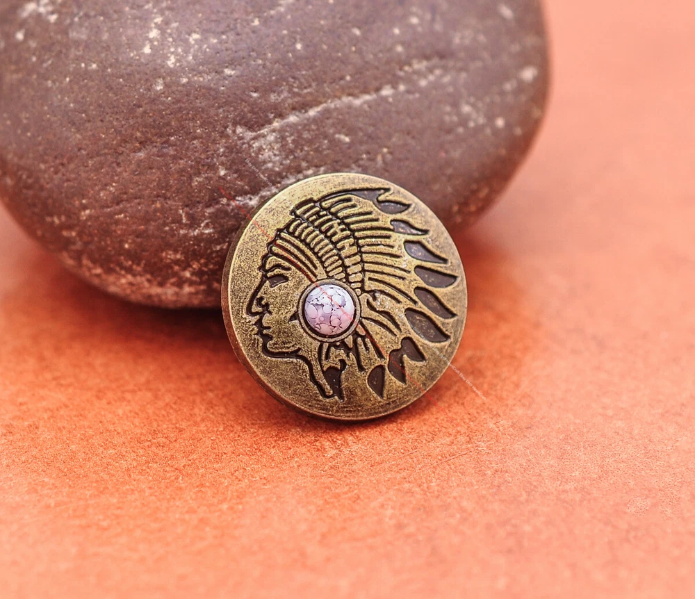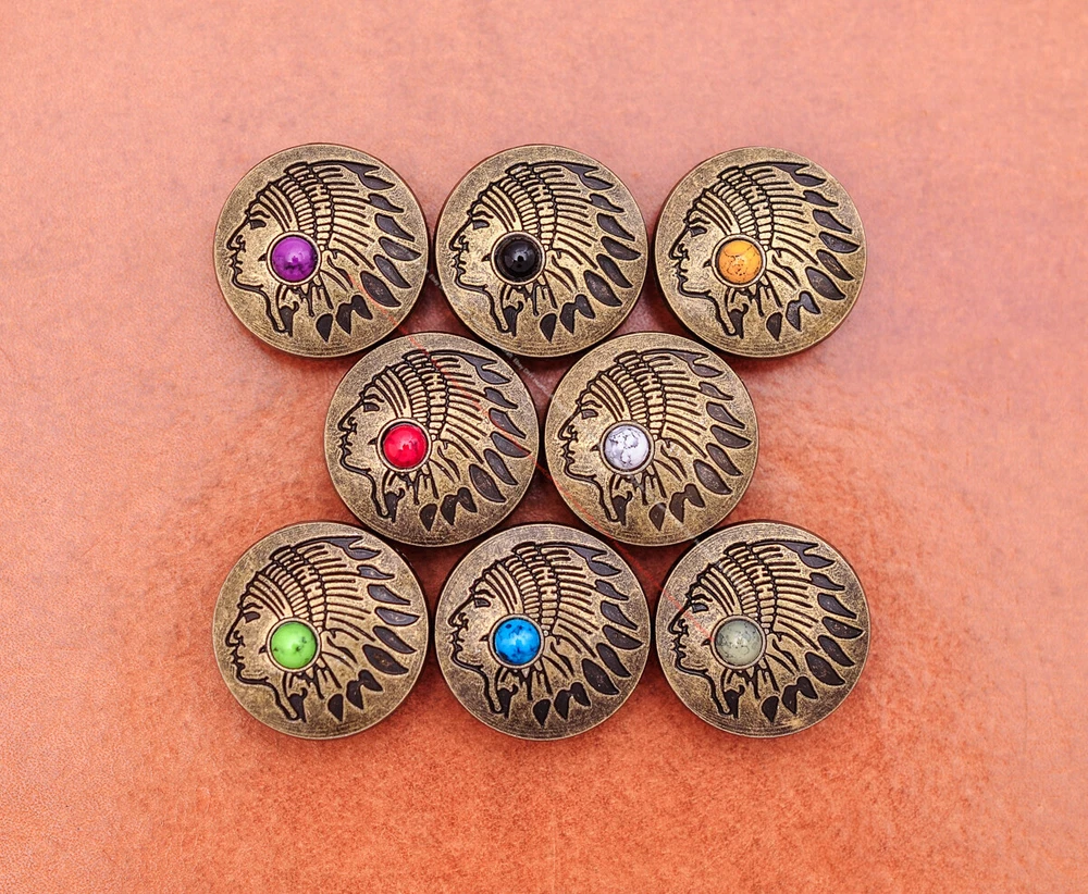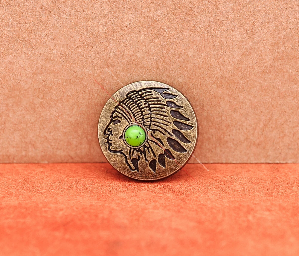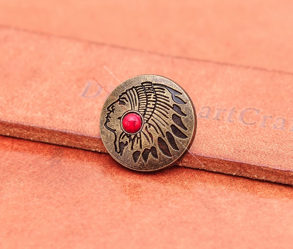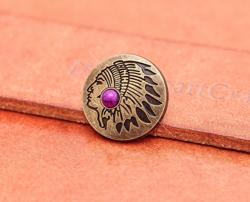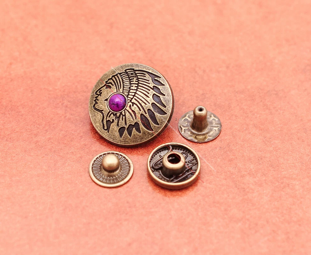 20x Brass Indian Head Leathercraft Turquoise Snap Button Closures Connector 20x Brass Indian Head Leathercraft Turquoise Snap Button Closures Connector Suitable For: Belts, Handbags, Hats, Jackets, Knife Shealths, Pouches, Saddles, Shoes, leather craft, clothes, craft,etc.. We have lots of conchos in my shop .Pls visit my store。pls add my store to your favorite shop.Thank you very much. Product: HORSE SADDLE LEATHERCRAFT CONCHOS Material: Metal alloy Color: Please refer to pictures Size: 20*20mm approx. Component: 20pcs/ set. *Under different light conditions, color may looks different. WARNING: The picture of the product all have copyright .All rights reserved, pirates must investigate. 盗图一经发现,一律追究法律责任,绝不和解 。 Payment Delivery details Contact us Terms of sale About us Payment *Please complete payment via PayPal. *If you buy more than one item, please wait for combined invoice to get shipping discount. *Please make sure your shipping address in eBay is correct before payment. Delivery details Country Shipping Methods Average Delivery Time USA Speedpak China(with tracking#) 7~15 working Days Others Int’l airmail from Hong Kong 15~35 Days *We ship from Hong Kong /China, it usually takes 10~30 days for delivery for most countries. *If the parcel does not arrive within estimated delivery time, please contact for help by eBay message. *We will make full refund or resend for free if parcel lost. Contact us We left positive feedback for you after receiving payment. Your feedback is very important for us, positive feedback and 5 Score DSR is highly appreciated. Please let us know before leaving any negative feedback or 1 point, 2 point low DSR or open any disputes on Paypal and Ebay, please give us the opportunity to resolve any problems and we will try our best to satisfy your needs. If any question, please feel free to contact us via "Ask seller a question" ,We try our best to reply to your emails as soon as possible, due to high volume of daily incoming emails and time zone difference, we may not be able to reply your emails immediately. Please allw 1-2 business days for us to response. We have producing factory, and teams for QC and Marketing, we are strict with quality control and provide with good online and after-sale service. Mixed lots wholesale order are welcome. Please feel free to contact if any questions. Terms of sale *Defective item will be replaced free and without returning. *If it is not defective item or wrong item/ color sent, buyer need to pay for the return postage. *Please be sure to contact before you send back the item. About us We are a kind and honest seller,We are factory ,we can offer factory price.Welcome to wholesale. your full satisfaction is always our best wishes. If you have any problems with our items, please kindly contact us.
