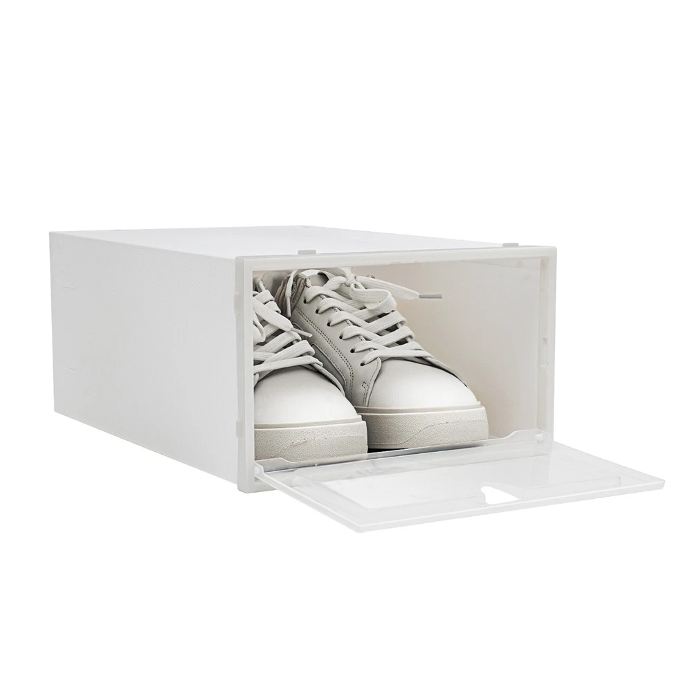 20x Large Plastic Shoe Storage Boxes Drawer Stackable Foldable Clear Organiser Description A beautiful life starts with organized storage. A set of 20 shoe organizers is enough for your neat storage needs. The transparent design ensures that your collection can be displayed and also allows you to easily find the right shoes without opening the box. In addition, it can maximize your space saving and keep your home neat and beautiful. If you are still struggling with messy shoes, try the stackable shoe organizers! Key Features High-quality Material: It is made of PP, which is harmless, environmentally frie ndly, impact-resistant, non-yellowing, and non-deformable, making it suitable for long-term use. Free Stacking: With the snap interlocking system, they can be firmly stacked up and down and be connected side to side to create different shapes without easy separation when you accidentally bump into them to suit different sized spaces and unique decorations. Stacking upwards saves a lot of space. Easy to Access: The transparent doors allow you to quickly find and select the shoes you want to match your outfit for the day. Flip-up doors allow for secure and easy shoe access. Powerful Storage Capacity: The combination of 20 shoe organizers can meet almost all your shoe storage needs. Besides, it can also store a large number of living and learning items to lighten the load of your cabinet . Placing boards on top of the stacked boxes can also hold keys and other miscellaneous items. Lightweight and Foldable: They can be folded for easy storage and transportation when not in use. The lighter PP organizer makes it easy for you to move it to any room to serve its storage and decorative purpose. Easy to Install: The already-made creases, simple construction, step-by-step installation diagram and installation video allow you to spend less time and effort on the installation. Easy to Clean : It is made of dirt-resistant PP. When it gets stained, you just need to rinse it with water and dry it to make it look new again. Life Assistant : This practical shoe storage assistant can help us organize our messy shoes, avoiding the panic of finding shoes in a pile and creating a cleaner, warmer living environment. Ideal Gift: With its simple appearance and good performance, this product can be used as a gift for housewarming, or you can give it to your family or friends so that they can also enjoy a neater environment. Details Heart-shaped Hollow Handle: The lovely heart-shaped handle not only is convenient for opening the door, but also promotes air circulation to prevent shoes from moisture and odor. Practical Door: Compared to a doorless organizer, it comes with a door to protect your precious shoes from dust and moisture. Flip-up doors are easier to open/close and also better protect your skin from scratches, compared to left and right opening doors. Smooth Rounded Corners: They protect your hands from being scratched during installation and movement for safer use. [ More Product Detail ] Heart Holes There is a heart hole on each cover of the shoe boxes which is beautiful and practical. The holes improve air circulation and make the shoes odorless. You can also store and take the shoes easily with the holes. PP Plastic Material PP plastic materials are odorless. They are safe to use. Efficient Storage In addition to shoes, the box can also be used to store other items such as belts, scarves, socks, cosmetics as well as fashion accessories. Easy to Pick Up The shoe boxes have a side flap design, it is easy to store and take shoes out of it. The shoe boxes are convenient to use. Easy Installation We provide videos and instructions for you and you can install the shoe boxes without any tools. So the shoe boxes are easy to be installed. Stackable Design The stackable design can save more space for you and make your home more organized. To stack, simply insert the boxes into the buckle. Connected joints for better stability. Waterproof & Easy Clean Simply rinse under clean water; Wipe dry with cloth; The air vents will dry the box quickly. Application The set of shoe o rganizer s can store flat shoes, leisure shoes and sneakers, and women's shoe size 10 (US) and men's shoe size 9 (US) . It is widely used in the entrance, study, toy room, bedroom and closet to organize clothes, toys, toiletries, books, magazines, documents, sundries and so on. Installation Steps 1. Shape the box along this crease. 2. Bend the bottom of the box. 3. Snap the buckle into the bottom holes. 4. Fold the 3 tabs. 5. Snap the tabs into the frame of the box. 6. Installation is complete. Specifications Material: PP Color: White, Clear Style: Simple, Modern Special Feature: Stackable Shape: Rectangular Number of Items: 20 Suitable Shoes: Up to 10 (Women, US), Up to 9 (Men, US) Frame Thickness: 1.1cm/0.43inch Each Organizer Size: 23*33*14cm/9*13*5.5inch Package Size: 47*37*12cm/18.5*14.6*4.7inch Gross Weight: 4.45kg/9.8lbs Net Weight: 4kg/8.8lbs Package Included 20*Shoe Organizers Notes Please note that this product is manual available in English, German and French, please contact customer service for more information. Please measure your shoe size before your purchase. High-top shoes and boots can't be put up vertically, but can be placed flat if they are true to size. For greater stability, it is recommended not to stack the boxes too high. Please allow the slight color difference caused by the shooting light and 1-3cm error due to manual measurement, and make sure you do not mind before you order. Notes:Please note that this product is manual available in English, German and French, please contact customer service for more information. Payment Delivery details Terms of sales About us Contact us Payment We accept ebay payment 。 Fees such as import duties, taxes are not included in the item price or shipping costs. These charges are the buyer's responsibility. Delivery details Shipping: 2-9 working days to: USA Terms of sales We mainta