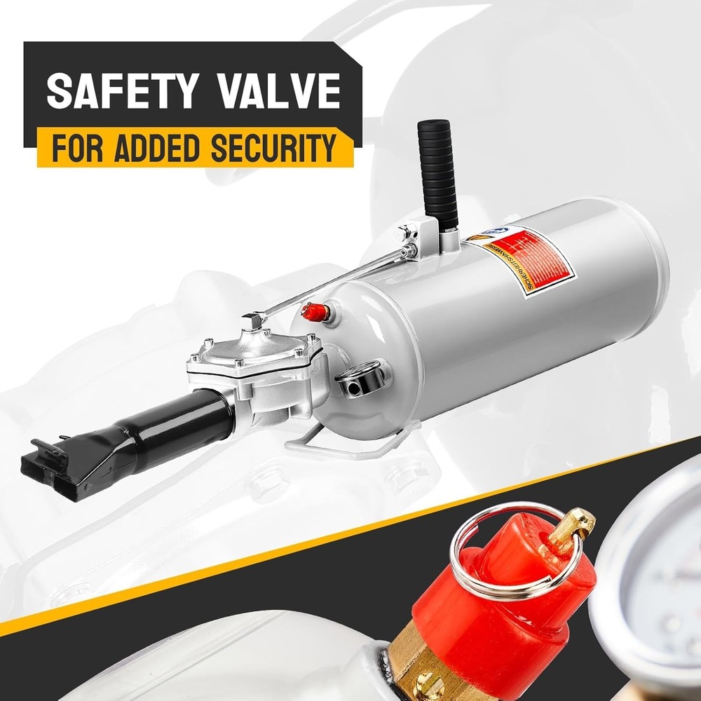 PRESSURE GAUGE EQUIPPED: The tire bead seater comes with a pressure gauge, which can help you read and adjust the air pressure for various vehicles more accurately. And the working pressure of the bead seater is 0.6-0.8MPa (87-116PSI). QUICK AIR INFLATION: Seating the tire bead can be done quickly after correctly putting the lip at the tube end between the tire and wheel rim and then pressing the trigger. And it is designed with handle, which makes it more convenient for you to hold the tire bead blaster. (NOTE: Please wear eye and ear protection before seating the tire.) SAFETY VALVE FOR ADDED SECURITY: The tire bead seater is designed with a safety valve. The safety valve will pop off automatically for added security when the air pressure exceeds 0.8MPa. And it comes with a long neck tube, which can keep you at a safe distance during operation. COMPACT: The bead blaster tire inflator is compact in size. It will be convenient for you to carry it with you and it won’t take up too much space. Besides, it is made of fair quality steel, solid and durable. WIDE APPLICATION: The bead seater is applicable for a wide range of tires, such as tires of motorcycles, electric bicycles, cars, ATVs, etc.