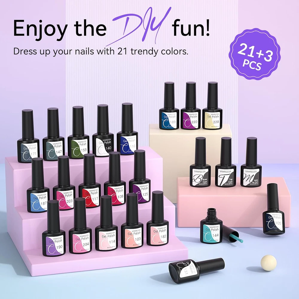 Store New Arrivals Add to Favorite View Feedback Contact 21 Popular Colors Gel Nail Polish Set 24 Pcs Gel Nail Polish Kit Glossy & Matte Top Coat Base Coat Pink Purple Blue Green Gel Polish Gel Nail Kit Gifts for Women Girls Description Color Fantasy Party Finish Type Glossy & Matte Country of Origin China Included Components Matte Top Coat *1, Base Coat *1, Glossy Top Coat *1, 8ML Gel Nail Polish *21 Item Form Gel Package Dimensions 6.34 x 5.63 x 3.23 inches; 14.07 ounces 【Fantasy Party Collection】 The 21 colors of gel nail polish handpicked by VANREESA, including white, black, pink, purple, red, blue, green and other classic colors, are the most popular colors of the moment, suitable for all styles, versatile and practical. You can choose any color to match and combine to create your own unique manicure style! 【What You Get】 This gel nail polish set includes 21* gel nail polish, 1* base coat, 1* glossy top coat and 1* matte top coat. VANREESA gel nail polish offers a rich and vibrant color palette, making it suitable for all occasions and holidays. Whether you're a beginner or an experienced nail art enthusiast, VANREESA gel polish will meet all your nail art needs. 【Safe & Long Lasting】 VANREESA gel nail polish ingredients are made from natural resins that are safe, non-toxic and low-odor, so you can use them with confidence. VANREESA gel nail polish is silky smooth, brightly colored and easy to apply, so even beginners can master its use. Prepare well before you start (shaping, buffing, cleaning) and follow the proper steps in the manicure instructions and your nail art will last for 21+ days! 【Warm Tip】 Gel nail polish does not dry naturally and must be cured under a LED/U V nail lamp. The color effect is best with 2 to 3 coats of gel polish. It is normal for colors to vary slightly under different light sources and displays. If you have any questions about this gel nail polish set, please feel free to contact us. 【Ideal Gifts Set for Her】 Beautifully packaged, this gel nail kit is a good choice of gift for each other, no need to struggle with the selection of gift. Whether for professionals, amateurs, nail salons or home use, this gel nail polish set is suitable. And this gel nail polish set is suitable for any occasion or holiday, such as Christmas, Halloween, Valentine's Day, Mother's Day, Thanksgiving, Women's Day, birthdays and anniversaries. Product Description More VANREESA Gel Nail Polish Kit Add to Cart Add to Cart Add to Cart Add to Cart Add to Cart Customer Reviews 4.0 out of 5 stars 412 4.0 out of 5 stars 412 4.0 out of 5 stars 758 4.0 out of 5 stars 758 4.1 out of 5 stars 37 4.1 out of 5 stars 37 4.0 out of 5 stars 412 Price $7.99 $ 7 . 99 $7.99 $ 7 . 99 $14.99 $ 14 . 99 $16.99 $ 16 . 99 — — $12.99 $ 12 . 99 Nail Lamp ✘ ✘ ✔ ✔ ✔ ✔ ✘ Glossy & Matte ✔ ✔ ✔ ✔ ✔ ✔ ✔ Nail Decoration ✘ ✘ ✔ ✔ ✔ ✔ ✘ Hot Sale ✔ ✔ ✔ ✔ ✔ ✔ ✔ Colors 21*8ml 21*8ml 24*8ml 24*8ml 40*8ml 40*8ml 36*8ml ABOUT US We offer the best prices around on high quality products. Our E-store includes media such as books, movies, music and games while offering electronics, toys, sporting apparel, clothing, tools, general home, garden items and more. SHIPPING We are always working hard to ensure your package arrives as soon as possible. Please understand that some factors like weather, high postal traffic, and the performance of shipping companies are outside of our control. We offer free shipping to the lower 48 states and ship within 2 business days of payment, usually sooner. We do not accept P.O. Boxes. Please provide a physical address. For shipping outside of the continental USA, we only use eBay's Global Shipping Program.The item is shipped to KY and then sent to the rest of the world. International customers are responsible for all duties and taxes. Continue to check out in order to calculate costs for shipping the item to your country. Messages regarding eBay's Global Shipping Program MUST be directed at eBay EXCLUSIVELY. RETURNS We offer a 30-Day Return Policy on items which you are not completely satisfied with. You have the option for a full-refund or an exchange of the item. No returns are available on items shipped outside of the USA. PAYMENT We accept PayPal. CONTACT US This page content is yet to come Please ad us to your favorite seller and visit again later Thank You CUSTOMER SATISFACTION We try our very best to make sure every customer is completely satisfied. If there's a problem, message us! We're happy to help. WE ACCEPT Copyright © 2021 AutoDS. | All Rights Reserved