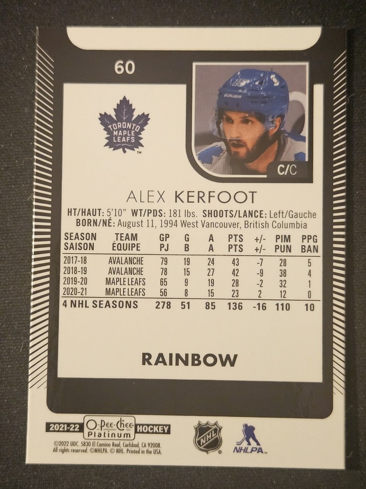 $ 1.58Alex Iafallo 21-22 OPC Platinum Rainbow Variant Hockey Card