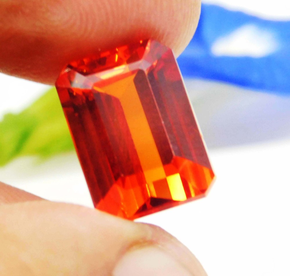19.20 Ct Natural Mexican Fire Opal Red Orange Emerald Cut Loose Gemstone