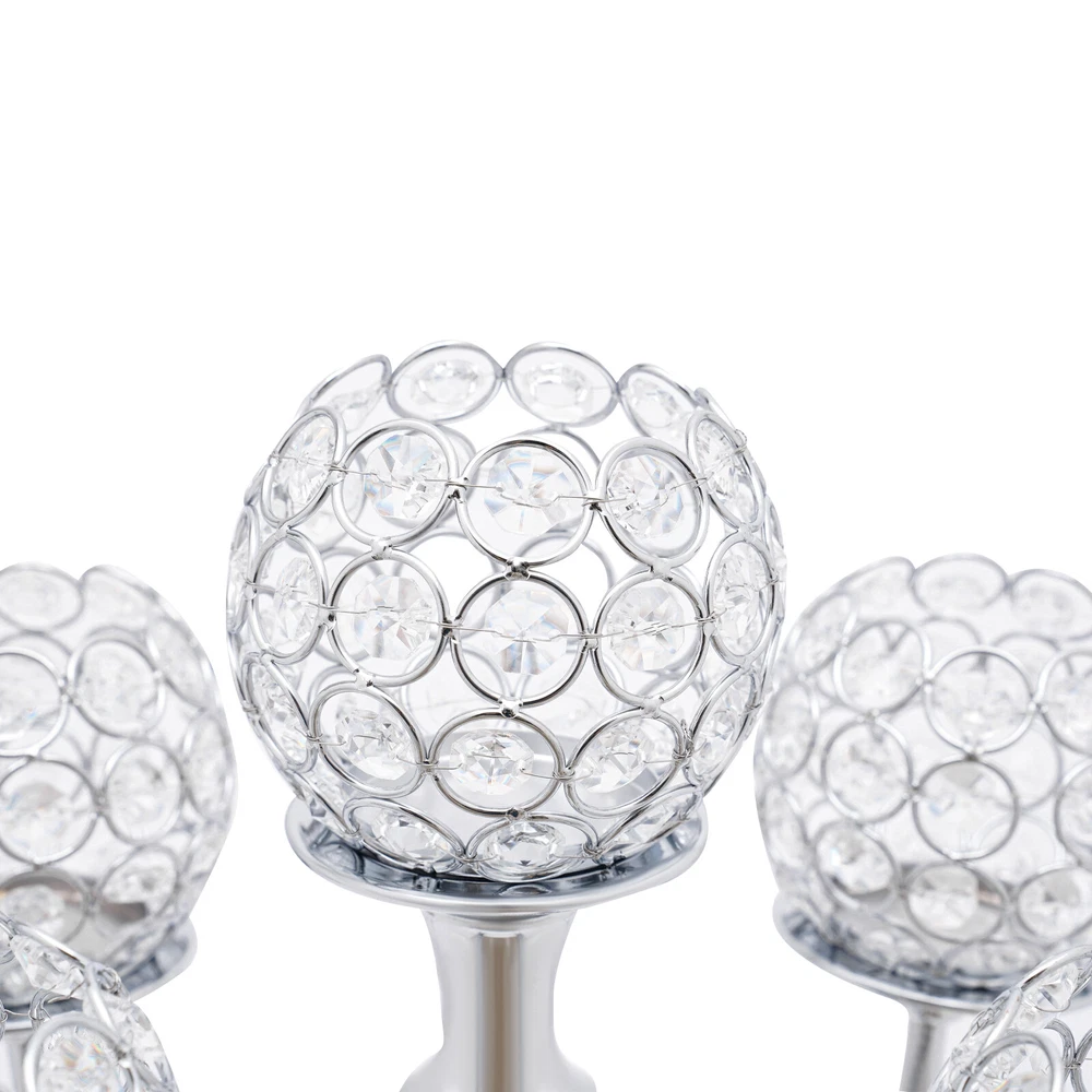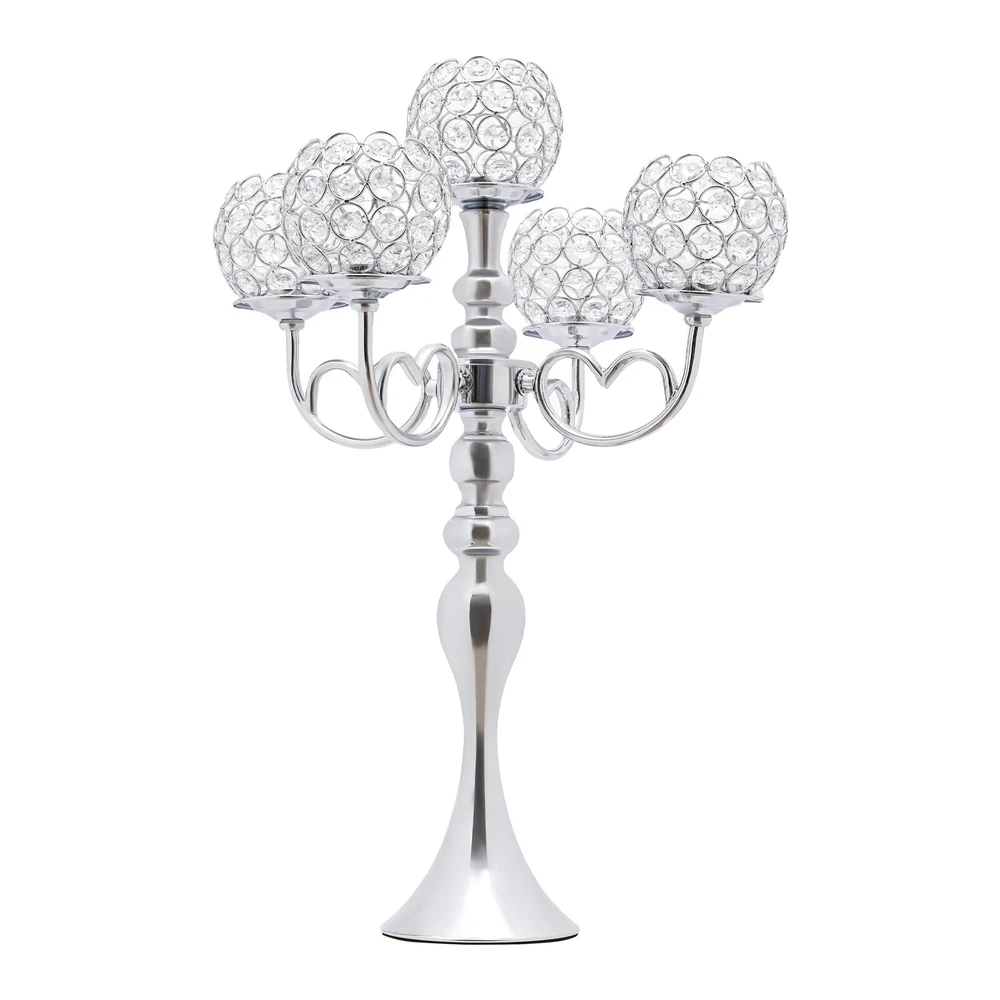21.5 Inch Tall Silver 2 Pack 5 Arm Crystal Party Candelabra Centerpieces