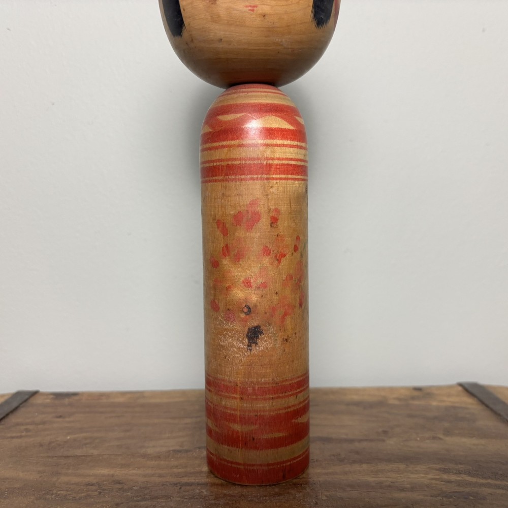 Japanese Kokeshi Doll A Japanese Kokeshi doll that stands approximately 21.5cm tall. This genuine piece of Japanese culture is an interesting objet d'art. History: Kokeshi dolls are Japanese wooden dolls traditionally made for children. It is said that Kokeshi were originally sold to visitors to hot springs in the Tohoku region of Japan during the late Edo period (1600-1868), to supplement business and keep workers' hands busy during the winter months. Over the years they have become increasingly popular worldwide, especially amongst shinnichi (Japanophiles) and collectors. Interesting fact: These dolls are the inspiration behind the Nintendo Mii characters. Please study the photos as they show the condition of the doll. Please note: These Kokeshi dolls are also listed on our own website (Rustique Living) and available in our shop. Therefore this listing may end suddenly if sold through there. Please study the photos as they form part of the description. Free U.K. delivery via Royal Mail / ParcelForce. See our other listings for more Kokeshi's and much more!