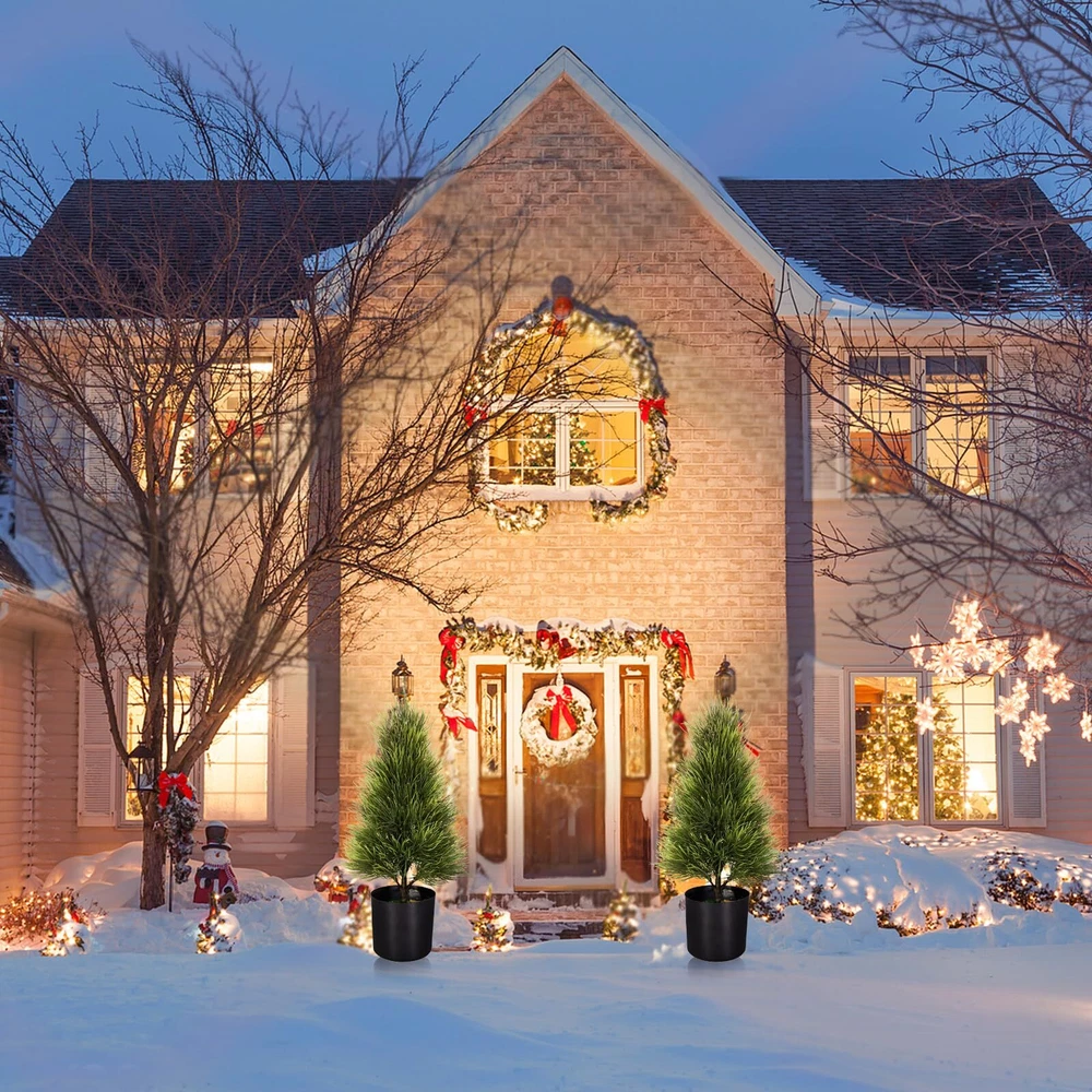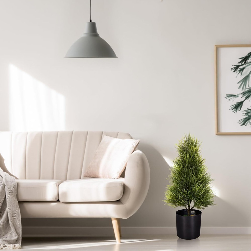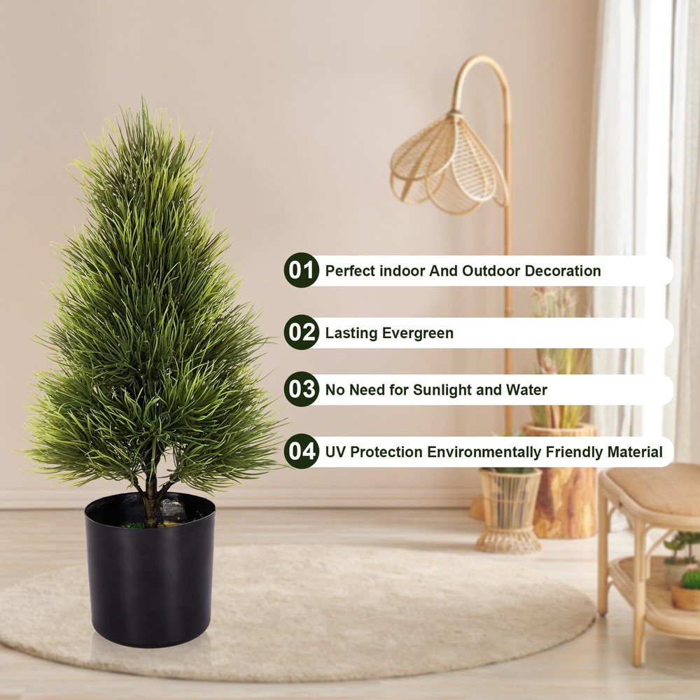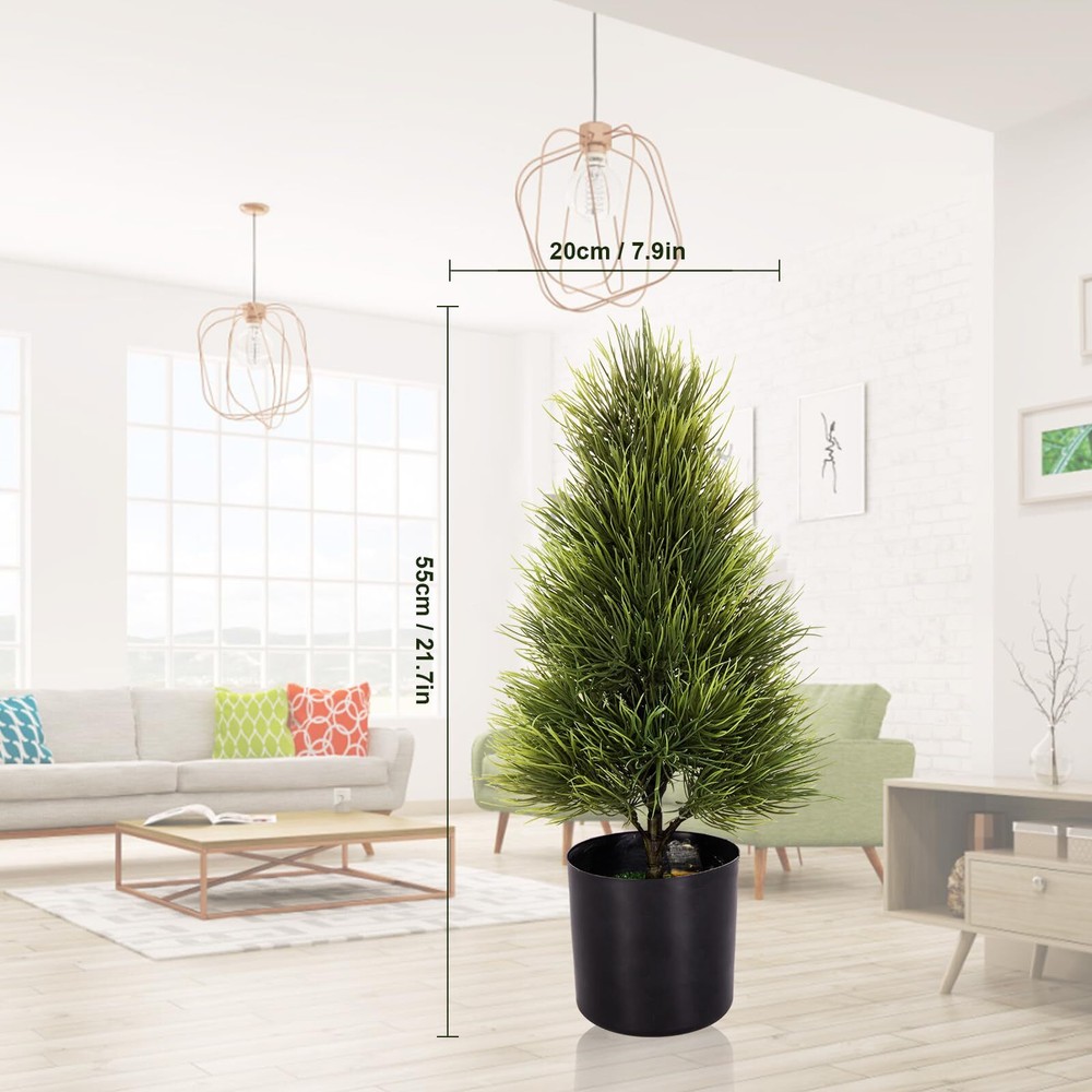 Realistic Design: Our 21" Artificial Topiary Trees feature lifelike foliage, crafted from high-quality materials that replicate the look of real pine, providing an elegant touch to any space without the maintenance of real plants. Versatile Use: This set of 2 potted fake trees is perfect for both indoor and outdoor decoration. Place them on your front porch, in your home, or even in your office to enhance your decor with a touch of nature. Perfect for Celebrations: Ideal for all seasonal decor, these faux outdoor topiary trees can serve as elegant pot fillers for festival planters, bringing festive cheer to your holiday celebrations. Satisfaction: Enjoy your 21" Artificial Topiary Trees with confidence, The size of fake trees is 21.7 * 8 *8inches, which can better and more flexibly decorate the scenes we want to set, always giving us a feeling of being close to nature and enjoying beauty Weather-Resistant: Made from good materials, our artificial plants are designed to withstand outdoor elements while maintaining their vibrant appearance, making them a long-lasting addition to your decor.These realistic simulated plants don't require us to water and maintain them, they can decorate our homes or offices very well