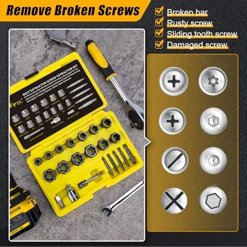 Menu 1. We require immediate payment. 2. We currently accept payment via eBay managed payments only. 3. Once payment is cleared, we will dispatch your shipment within 1-3 business days. Please refer to the "Shipping" tab for more information regarding shipping speed to your destination. 2-IN-1 Bolt & Screw Extractor Kit, 21PCS Easy Out Bolt Extractor Socket Set, 3/8-Inch Drive, Stripped Screw Removal Tool for Broken, Damaged, Rounded Nuts Product description Versatile Combination: 21pcs Bolt & screw extractor kit includes 13pcs bolt extractor kit with 3pcs adapters, 5pcs stripped screw removal tool. This tool kit helps handle most maintenance tasks and is a great addition to home or mechanical tool set Easily Remove: Bolt extractors set offer a wide range of sizes (8mm to 19mm). Each comes with a standard 3/8-inch drive. The special reverse spiral design make it easily remove damaged bolts, nuts. Damaged screw extractor set allowing you to quickly extract damaged, stripped, rusted, painted or rounded screw in speed! Premium & Durability: The stripped bolt extractor made of Cr-Mo Steel. The screw remover and extractor made of 4341 HSS materials. Providing excellent durability and corrosion resistance, and not easily damaged. Please note: Cobalt drill bits should not be used for stainless steel Easy to Use: These stripped bolt extractors are useful for both power tools and hand tools, a screw extractor work with most drill and screw size, All sizes is engraved clearly on the socket for easy identification Multi-Function: This ez out bolt extractor set complete range of sizes making it perfect for mechanical maintenance, automotive, home and production repair needs. A compact, heavy-duty blow mold case keeps all the extractors organized and allows you to take your set on the go PLEASE MESSAGE US IF YOU HAVE ANY OTHER QUESTIONS, AND MANY THANKS FOR READING ALL OF THIS. Copyright ©#. All Rights Reserved.