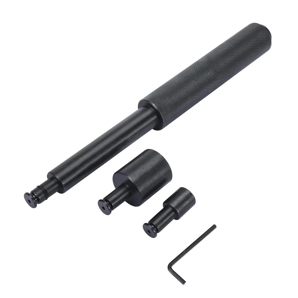 Product Description 21 pcs Bushing Removal Tool, Bearing and Seal Driver Set 21 PCS Extra Large custom bush, bearing, and seal driver set; With ultra-strong carbon-steel construction and black anodic oxidation coating for rust resistance; How to use: Select the required sizes; Assemble your custom driver; Select the components or sizes- Assemble the drive tool; Strike the tool and do the job. Specification The discs go from 70mm (2.75 inches) all the way to 150 mm (5.9 inches) in 5 mm(0.2 inches) increments; All discs are connected with a 12mm shaft and screw which quickly connects to a 280mm (11" ) handle, help remove or install bearings quickly and professionally; INTERCHANGEABLE All the 17 pieces discs are interchangeable with each other, allowing the mechanic to complete the job quickly, professionally, and promptly; EASY OPERATION All discs are connected with a 12mm shaft and screw which quickly connects to a 280mm (11" ) handle, help you remove or install bearings quickly and professionally Easy to Carry Comes with a heavy-duty plastic case with precision-sized compartments for every piece - ideal for storage and transport.