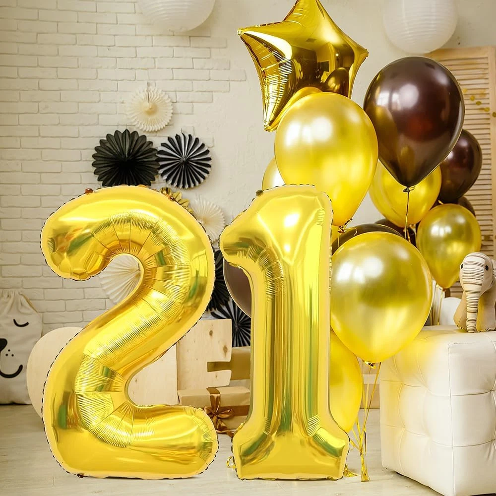 Type: Does not apply Theme: Number Brand: Does not apply gtin13: 744759857460 Package Dimensions: 4.92 x 4.61 x 0.63 inches Material: Nylon Size: Number 21 Item Weight: 1.44 ounces UPC: 744759857460 Special Feature: Gold Letter and Number Design with Mylar and Nylon Material Occasion: Birthday Color: Gold Shape: Number Manufacturer recommended age: 12 years and up Unit Count: 1.0 Count CPSIA Cautionary Statement: Choking Hazard - Balloon, No Warning Applicable