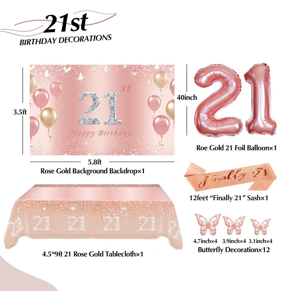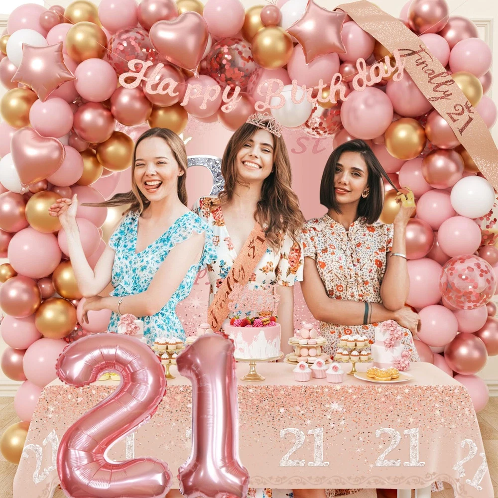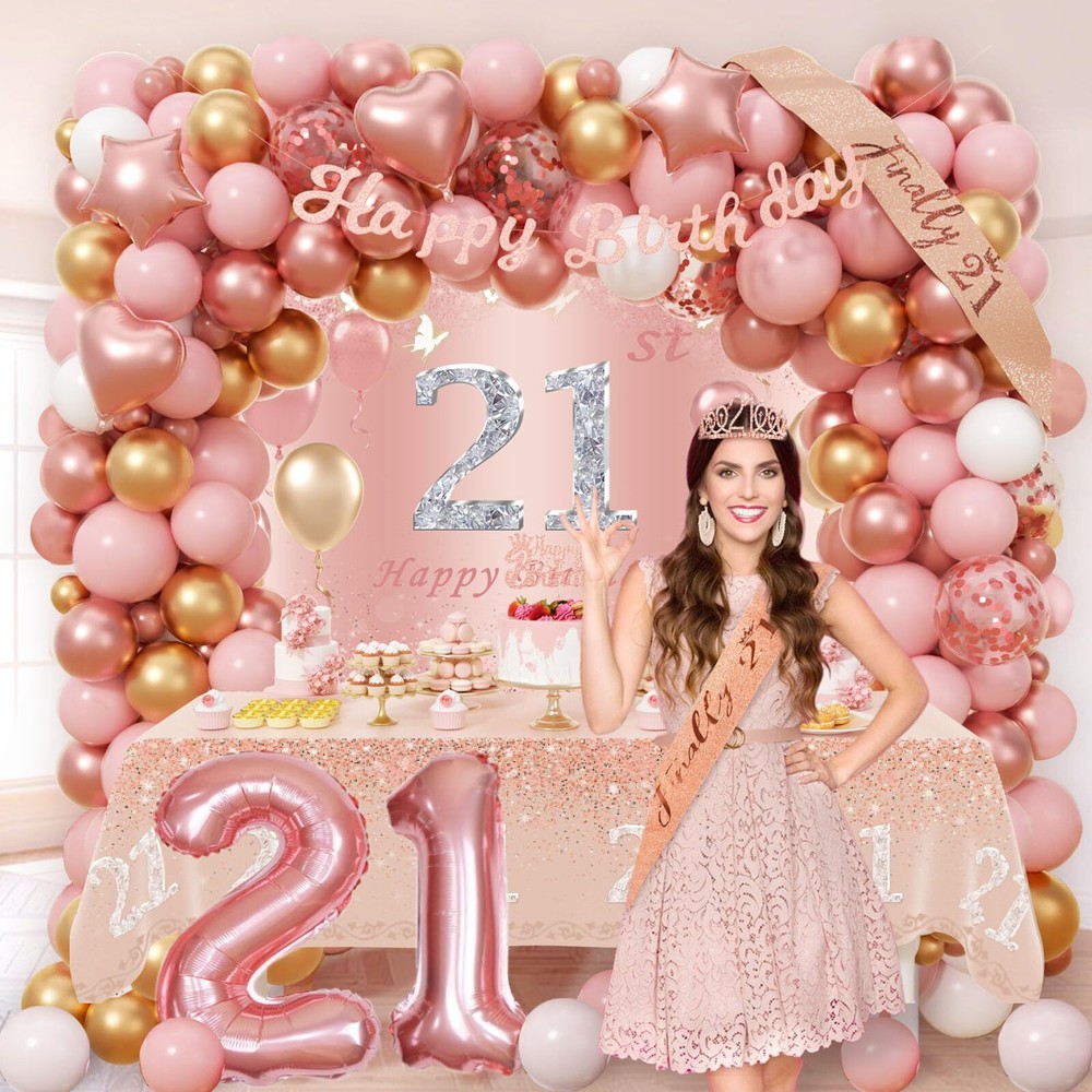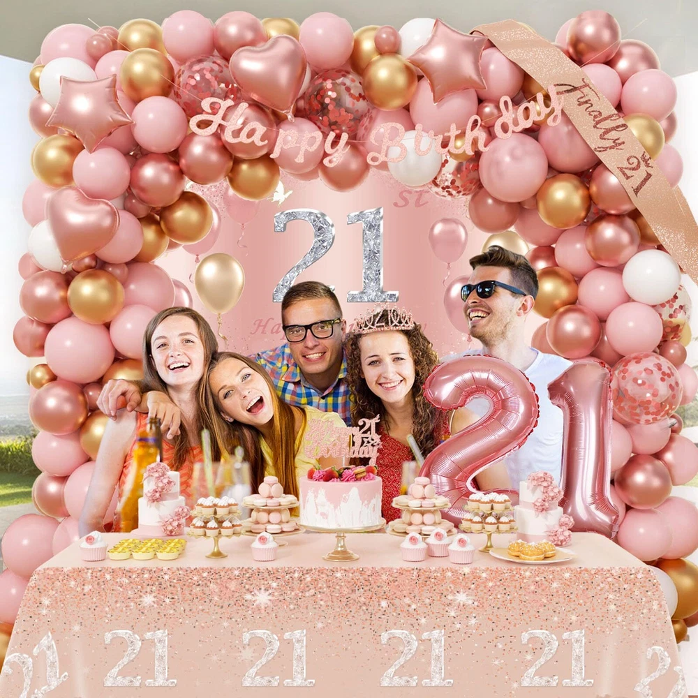 21st Birthday Decorations for Her Rose Gold Birthday Decorations with Backdro...