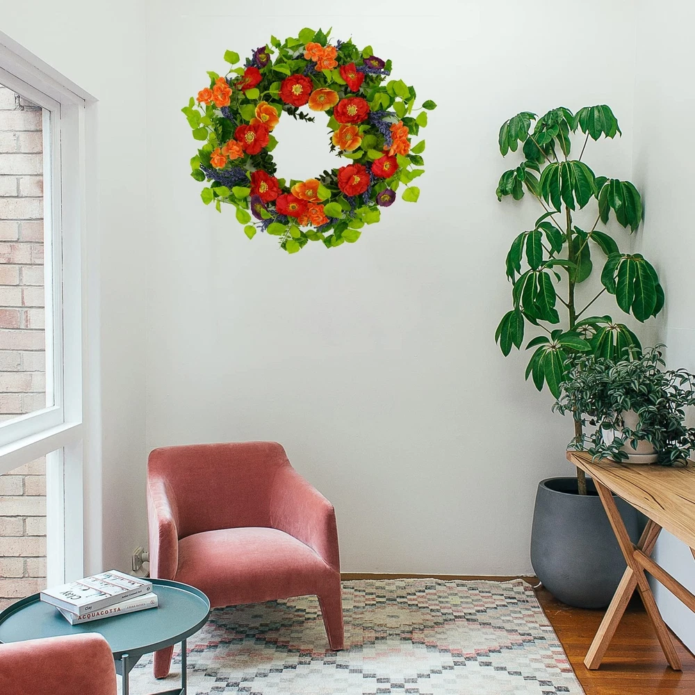 22 inch Artificial Spring Summer Wreaths for Front Door Poppy Wreath with Lavender Ear,Cherry Blossom,for Front Door Indoor Outdoor Home Farmhouse Decor Product Details Color: Red Poppy Brand: WreathDream MPN: SW2023 UPC: Does not apply EAN: Does not apply Color: Red Poppy Brand: WreathDream Material: Silk Mounting Type: Door Mount Shape: Round Product Dimensions: 20"D x 20"W x 5"H Occasion: Multi-occasions Manufacturer: WreathDream Color: Red Poppy Brand: WreathDream Material: Silk Mounting Type: Door Mount Shape: Round Product Dimensions: 20"D x 20"W x 5"H Occasion: Multi-occasions Manufacturer: WreathDream Item Weight: 1.41 pounds Country of Origin: China Item model number: SW2023 Batteries required: No High-quality Material: This artificial Spring Summer poppy wreath is made of silk which can be used all year round. Unique Design: This Spring front door wreath is decorated with a full circle of Green leaves, lifelike poppy,Lavender ear,Cherry Blossom a romantic look that makes for a wonderful style for spring door decoration. Elegant and vivid colors make for timeless seasonal home decor Perfect Size: The outer diameter is about 22", the inner diameter is about 10", perfect size for indoor and outdoor decoration Easy Maintenance: Highly realistic handmade artificial wreath makes it durable and requires no special maintenance. Just wipe it with a wet tissue or towel to keep it neat Multi-occasions: The wreath can be used indoor or outdoor, place it on your front door, or hang it above your fireplace. It's also perfect for decorating weddings, birthdays, stages, bedrooms, offices, dining rooms, and others