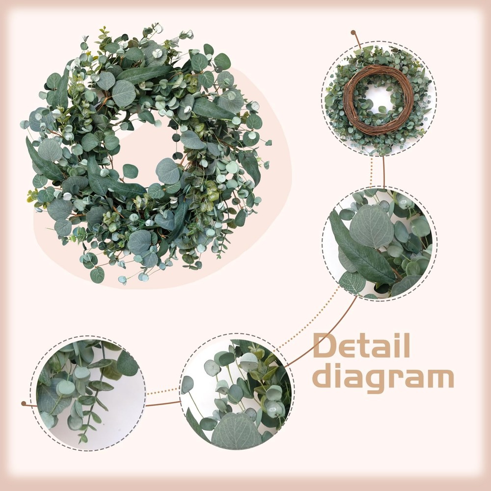 This wreath is absolutely stunning! The eucalyptus leaves look so realistic with their rich texture and vibrant colors, adding a touch of natural elegance to any space. It’s lightweight yet well-made, perfect for doors, walls, or even as a centerpiece. The versatile design works year-round, and the soft leaves give it a lifelike feel. I love how it instantly brightens up my entryway—great quality and beautiful detail!