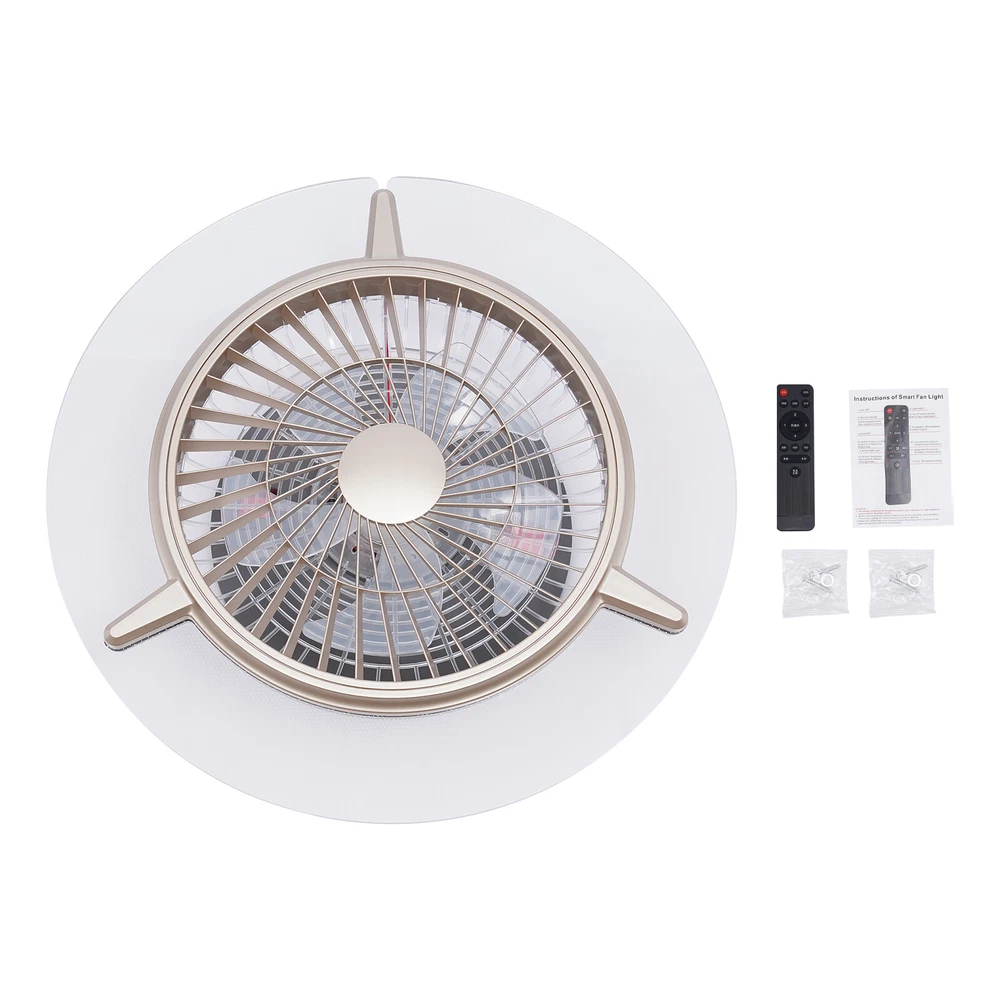 Modern LED ceiling fan with lighting fan light 48W dimmable remote control Characteristics: Type: ceiling fan with lighting and remote control quiet Application: 15-20 square meters Fan blades: Acrylic Voltage: 85-265 V LED power: 48W Motor power: 55W Noise development: Low wind noise is only <18 dB Function: lighting + low / medium / high three wind speeds + time control (remote control) Light source: LED three colors * Dimming three-color segmentation Applicable space: bedroom / l children's room / study / living room and other places Product size: 56 * 56 * 15.2CM / 22 "* 22" * 6" Package size: 60 * 60 * 21CM / 23.6 "* 23.6" * 8.3" Shipping weight: 5KG Package: 1 * ceiling fan 1 * remote control 1 * bag accessories 1 * instruction manual 22" Dimmable Ceiling Fan Light Chandelier with LED Invisible Blades + Remote US Beschreibung Description Have You Ever Wanted to Have a New Light Fixture That Combines a Lamp and a Fan into One? Have You Ever Been Unable to Sleep Because of the Noise of the Fan at Night? Are You Looking for a Fan That Is Super Quiet and Has Enough Airflow? Do You Want to Have a Light That You Can Adjust the Lighting Effect at Will? Then You Can't Miss Our Stylish Three-color Remote Control Fan Chandelier! This Three-color Fan Light, Remote Control of Wind Speed and Brightness Through the Intelligent Remote Control, the Lowest Wind Speed less than 18 Decibels, to Bring You a Comfortable and Convenient Living Experience! Key Features Exquisite A ppearance : the Simple and Fashionable Shape of This Product, the Unique Design of Combining Fan and Chandelier, Improves Your Life Interest. Bright Light : This Fan Chandelier Has 48w High-powered Lighting, Lighting up Your Room and Your Life. Comfortable and Healthy : the Fan Chandelier Is Made of High-quality Led Light Source, Which Can Effectively Protect Your Eyes When Using. Such a Healthy and Comfortable Fan Light Brings You a Quality Experience. Smart : This Product Has a Timing Function That Automatically Turns off the Fan and Light When It Arrives, so You Can Sleep at Night Without Getting Blown Cold. Quiet : the Minimum Decibel Is less than 18 Decibels, so You Can Have a Quiet and Comfortable Sleep in the Sweltering Night and Be Able to Concentrate on Enjoying It While Reading. Thoughtful Speed : This Fan Chandelier Has Three Different Wind Speeds to Meet Your Different Cooling Needs. Low-speed Wind Makes You Sleep Quietly, Medium-speed Wind Makes You Feel More Comfortable, and High-speed Wind Makes You Cool down Quickly. Economical : This Fan Light and Other Fan Lights Are on the Market, Compared with Energy-saving More than Eighty Percent. Moreover, This Product Is a Fan and a Light. You Get Two Functions for the Right Price, Which Is Affordable. Convenient to Control : Our Fan Chandelier Is Equipped with Remote Control, so You Can Adjust the Light and Wind Speed at Any Time While Sitting or Lying down. Wide Applications : You Can Adjust the Lighting Effect (Warm White, Neutral White, Cold White) for the Lighting. Reading Books in Cool White, and Watching Television in Neutral White, Romantic Atmosphere in Warm White. This Three-color Fan Light Is Suitable for the Bedroom, Children's Rooms, Study/Living Rooms, and Other Places. Details Acrylic T ransparent F an B lade : the Fan Blade Uses Transparent Acrylic Material, Beautiful at the Same Time, to Ensure the Durability of the Product. Let Customers Experience a High-quality and Beautiful Fan Chandelier. Led L ight G uide P late : the Light Guide Plate Is Made of Transparent Acrylic, with No Color Deviation, Uniform Light Emission, and Fine Texture. This Item Is Sufficient and Uniform Light to Bring You a Sense of Quality Experience. Application This Three-color Fan Light Is Suitable for the Bedroom, Children's Rooms, Study/Living Rooms, and Other Places Between 15 and 20 Square Meters Places. Specification Product Size: 56 * 56 * 15.2cm / 22 * 22 * 6 Inches Package Size: 60 * 60 * 21cm / 23.6 * 23.6 * 8.3 Inches Shipping Weight: 5kg/11lbs Application: 15-20m 2 /161.45-215.27ft 2 Fan Blades: Acrylic Voltage: 110 V Led Power: 48w Motor Power: 55w Color: Gold Noise Development: Low Wind Noise Is Only <18 Db Function: Lighting + Low / Medium / High Three Wind Speeds + Time Control (Remote Control) Light Source: Led Installation The Item Needs to Be Installed by Yourself. Please Read the Instruction Manual As a Reference. If You Have Any Problems, Please Feel Free to Contact Us, We Will Reply and Solve the Problem As Soon As Possible. Package Included 1 * Ceiling Fan 1 * Remote Control 1 * Glove 1 * English Instruction Manual All Accessories Required for Assembly Notes Please Allow the Slight Color Difference Caused by the Shooting Light and 1-3 Cm Error Due to Manual Measurement , and Make Sure You Do Not Mind Before Ordering. Payment Delivery details Terms of sales About us Contact us Payment We accept ebay payment 。 Fees such as import duties, taxes are not included in the item price or shipping costs. These charges are the buyer's responsibility. Delivery details Shipping: 2-9 working days to: USA Terms of sales We maintain high standards of excellence and strive for hundred percent customer satisfaction. Feedback is very important to us. We hope that you contact us immediately before you give neutral or negative feedback, so that we can address your concerns. It is impossible to address issues if we do not know about them! About us Your satis faction is our ultimate goal. We work hard to earn your trust and future business. Our certified technicians have tested each item before shipping. The unit comes with 1 year limited warranty on all manufacturing defects. a) If you receive a defective item, you may return it or ask for a discount. Please contact us within 14 days after you receive the package. b) What you returned must be intact and in its original packaging as re? u. Customer is responsible for shipping costs of the returned item. c) We will cover the cost 