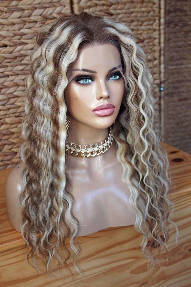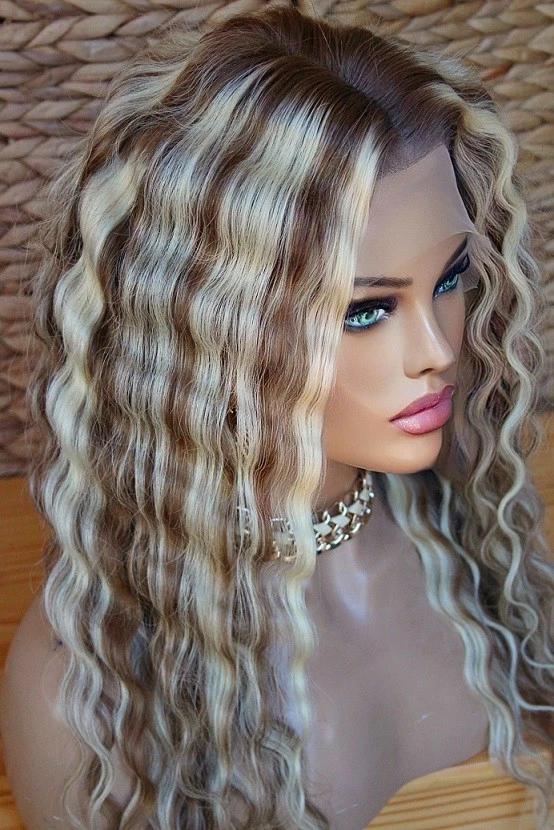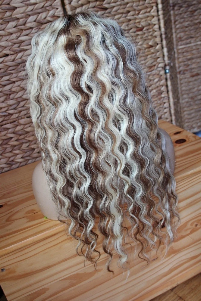 $ 61.6624 Inch HighlightBlonde Wave 100% Human Hair Wig 13x4 Lace Front Wigs