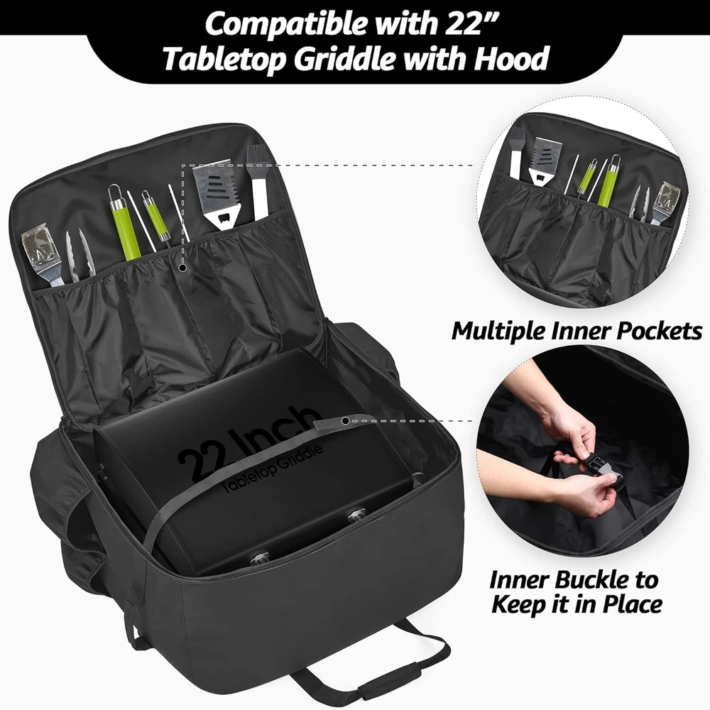 Product Description 22 Inch Tabletop Griddle Carry Bag, Outdoor Griddle Cover Compatible with 22 Inch Tabletop Griddle with Hood, Portable Griddle Storage Case for Tabletop Griddle 22-Inch with Hood, Bag Only Spacious Capacity: The high capacity griddle carry bag is mainly compatible with Blackstone 22 inch tabletop griddle with hood, for outdoor activities and home storage use Functional Use: With 3 elastic-top pockets on the griddle bag cover for griddle tools like locking tongs, slotted, you can use the inner fastener buckle to hold the griddle in place Multiple Pockets: 5 side pockets are used for 1 pound propane gas cylinder, and side buckles can stabilize the griddle cover in a good shape; the large front pocket is extra space for griddle accessories Easy to Carry: 2 carrying ways to use: 2 side short handles for easy movement outdoors, 2 padded long straps can carry the griddle from home to travel car Outdoor Helper: 26 x 13.5 x 20.8 inches is the tabletop griddle bag dimensions; outstanding griddle storage case companion for outdoor activities, such as camping, tailgate party, RV travel, or picnic About Us We are a reputable seller with many years of experience selling on eBay. Our goal is to provide high-quality products and excellent customer service. Shipping Items will be shipped within 1-3 business days when we received payment. (Orders are not processed on weekends & holidays) Tracking information will be sent once item is shipped. Delivery time depends on destination and other factors Item is shipped to ebay address. Leaving correct address can minimize delay. For international shipping and shipping to Guam, Hawaii and Alaska, Please contact us before placing the order. International buyers please note: Import duties, taxes and charges are not included in the item price or shipping charges. These charges are buyer’s responsibility. We will try our best to reduce the risk of the custom duties. Local pick-up is unavailable at the moment. Contact Us We reply any email messages within 1 business / working days(off-duty at weekend). If you do not get a response from us, then please check your junk or spam mailbox. Our Business hours: Mon-Fri 9:00-18:00, UTC/GMT +8 hours. Please contact us either by clicking "contact seller" in the "purchase history" section or simply click "ask a question" at the bottom of this page. If you are unsatisfied with our item or service, please contact us before leaving any feedback. We are committed to resolve all issues in a friendly and satisfactory manner.