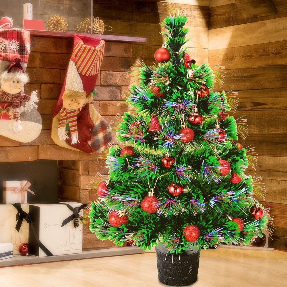 22'' Pre-lit Fiber Optic Desktop Christmas Tree Mini Artificial Tabletop Features: π 22'' Prelit Tree / 52 Tips - The Christmas pine tree comes with 20 red balls, made from environmental-friendly PVC material, which makes the tree much safe even to babies. π Multicolored Fiber Optics LED Lighted Mini Tree: Because of the built in fiber optic filaments in front of the branches, the Xmas tree will be colorful and flashing when it turns on. π Stable Exquisite Plastic Pot Base - This artificial Christmas tree features a dark black exquisite base, so no need to buy a tree shirt. π Dense Individual Tips: A full-body, dense tree shape is provided by plentiful PVC branch tips for a life-like look that offers plenty of space for ornaments and tinsel. π Convenient to /Light/Assemble/ Dissemble - Just put 3 AAA batteries in the base and turn on the button, the mini Christmas tree can be light colorful. No need any plug or USB. It has hinged, folding branches to allow for easy assembling, dismantling, and storing during the holiday off-season. SHIPPING We are always working hard to ensure your package arrives as soon as possible. Please understand that some factors like weather, high postal traffic, and the performance of shipping companies are outside of our control. We offer free shipping to the lower 48 states and ship within 3 business days of payment, usually sooner. We do not accept P.O. Boxes. Please provide a physical address.
