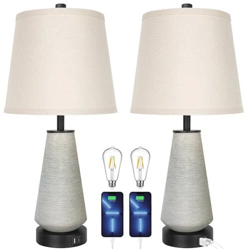 Menu 1. We require immediate payment. 2. We currently accept payment via eBay managed payments only. 3. Once payment is cleared, we will dispatch your shipment within 1-3 business days. Please refer to the "Shipping" tab for more information regarding shipping speed to your destination. 22" Set of 2 Touch Control Table Lamps, 3-way Dimmable Ceramic Bedside Lamp, Farmhouse Rustic Nightstand Lamp with USB A+C Charging Ports, End Table Lamp for Living Room Office Bedroom Home Product description Stylish Design with Ceramic Base: This table lamp features a sophisticated handmade brushed grey-green ceramic base, perfect for enhancing any bedroom, living room, home or office decor. The ceramic base is not only visually appealing but also ensures stability and durability. Convenient Touch Control: Easily operate the boho end table lamp with a simple touch. The touch-sensitive base allows you to turn the light on or off with a tap, bringing high-tech convenience to your bedside, desk, or end table, adding convenience and modern flair to your lighting experience. Brighten up your life with our modern nightstand lamps. 3-Way Dimmable Lighting: The farmhouse elegant side table lamp offers three brightness levels, allowing you to adjust the light intensity to suit your needs. Whether you need a soft nightlight for your baby room, bright task lighting for your study room, or ambient lighting for your Dining Room, this modern lamp has you covered. Includes 3000k LED Bulbs: Comes with two E26 base 8W 1000LM 3000K LED bulbs that provide warm, cozy lighting. These energy-efficient bulbs have a long lifespan, saving you the hassle of frequent replacements. Ideal for reading, studying, or creating a relaxing atmosp. Built-In Dual AC Charging Ports: Equipped with Dual AC charging ports on the base, this rustic lamp lets you conveniently charge your phone, tablet, or other devices, keeping your workspace neat and organized. This elegant table lamp is not only functional but also a stylish addition to any home or office. Enhance your space with this versatile and modern lighting solution. PLEASE MESSAGE US IF YOU HAVE ANY OTHER QUESTIONS, AND MANY THANKS FOR READING ALL OF THIS. Copyright ©#. All Rights Reserved.
