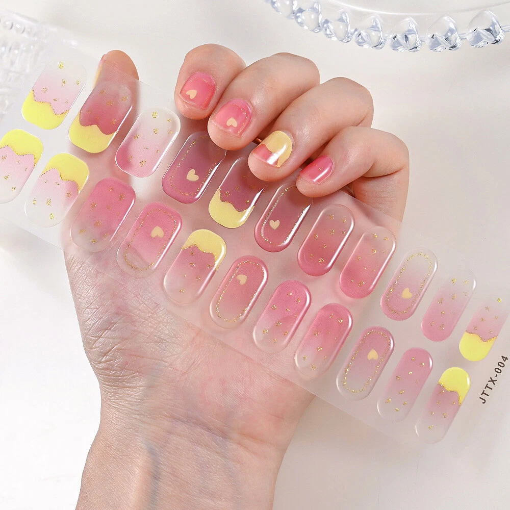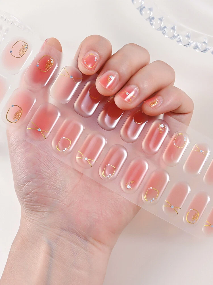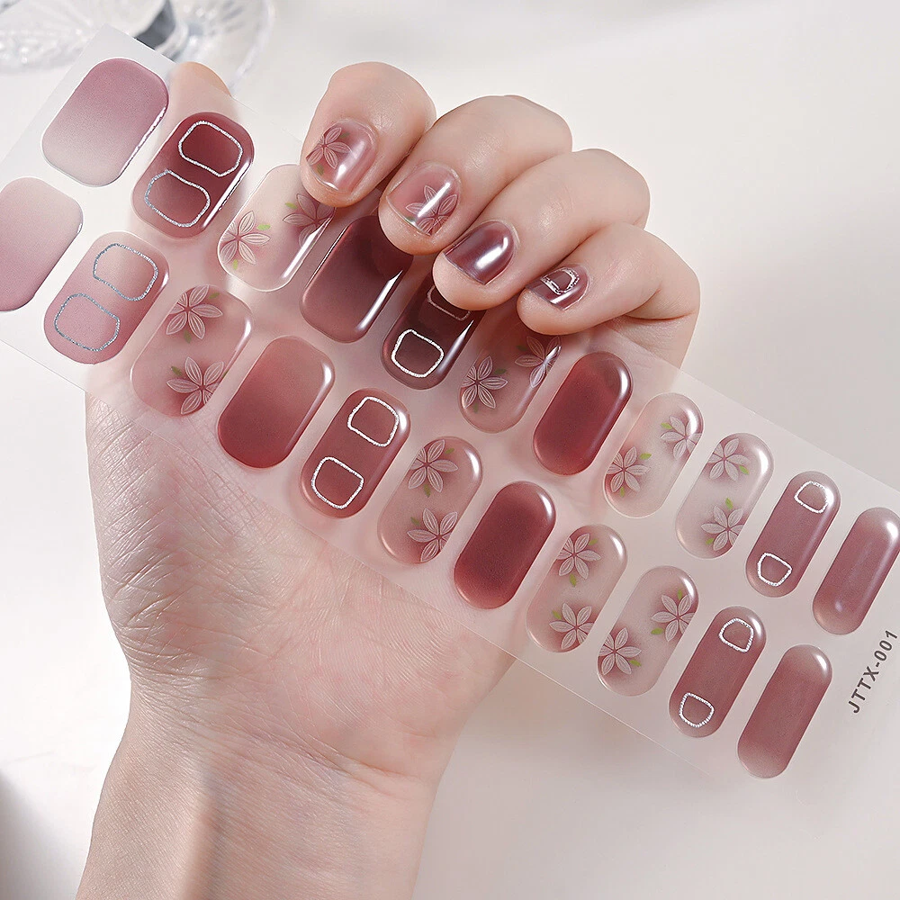 Full Cover Wraps 22Tips Gel Nail Sticker 3D Foil French Patch DIY Manicure 100% Brand New Color:As the picture shows QTY:22Tips/Sheet Color:As Show Package Include: 22Tips/Sheet Nail Stickers Features: What are semi-cured gel nail wraps stickers? 1.They are stickers made of real liquid gel and cured (or finalized) by 60%. 2.They are made of flexible and wearable material in order to fit most nail shapes and sizes. 3.After placing them on your nails and curing the remaining 40% with a UV lamp, the gel will completely harden, and the effect will be like applying colorful nail polish in a nail salon. 4.Semi-cured gel nail strips can also be dried naturally under the sun for 1-2 hours without UV light. HOW TO USE: 1. Smooth your nails with the nail file and clean your nails with cotton pads. 2. Choose the right size that fits your nails, peel off the protective films of the Gel Nail. 3. Place on the fingernails gently. 4. Use a small wood stick to press and flatten the edges of the nails. 5. Use scissors to cut off the excess gel nails, and then file the perfect shape with a nail file. 6. Cure the gel nails under UV/LED light. 7. Smooth the edges with a nail file. 8. Done! How To Remove: 1.Use the wood stick to lift gel nail wraps off your nails. 2.Clean your nails with cotton pads. ATTENTION: 1: Please use it immediately after opening it. 2: Please keep it in a film container after use, and use a sealing strip to avoid drying out. 3: Please keep it away from young children, and avoid eating by mistake. 4: Do not use it when your skin has a cut. 5: The colors may exist slight differences due to different screens. STORAGE: Please store in dark, cool and dry place to avoid hardening