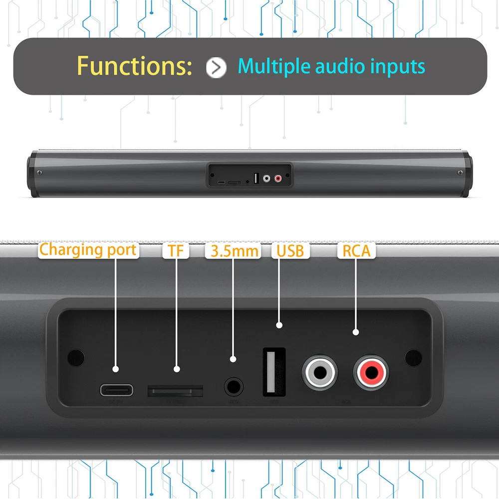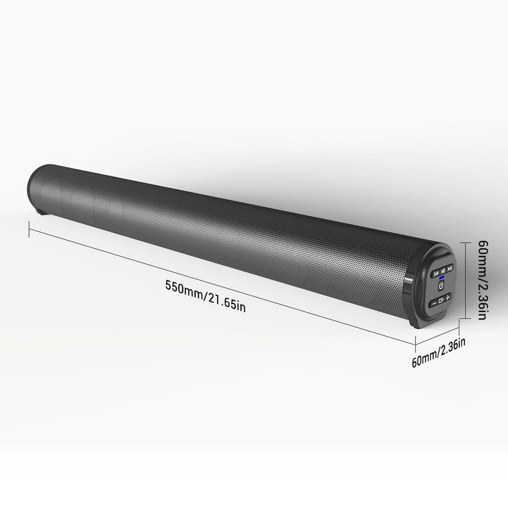 22'' Wireless Bluetooth TV Theater Subwoofer Soundbar Sound Bar Computer Speaker Feature: Upgraded version of the deluxe audio, 4 speakers, 3D stereo surround sound, the effect is absolutely shocking. Support Bluetooth connection, fully compatible with most kinds of Bluetooth devices, wireless playing, do follow your heart. Support U disk playback.You can also play the audio of your phone or other device via the audio cable. Built-in DSP sound processor with clear sound and no noise. Simple connection, easy to operate. Watching TV at home is like watching a movie at a movie theater. It gives you a theater level sound experience. Specification: Speaker power: 5W × 4 Color: Black Use transmission power: 1.49mW Transmission frequency: 2.48GHz Transmission distance: 8-10 meters Music playback time: about 2.5 hours Charging time: 2-3 hours Standby time: 240 hours Support formats: A2DP, AVRCP, HSP and HF Battery: 18650, 3.7V / 2000mA SNR: -80db Frequency response: 20HZ-20KHZ Charging voltage: DC 5V / 1A-2A Charging socket: micro 5pin (V8) Support TF card audio input Support 3.5mm audio input Support U disk audio input does not support hands-free With radio function 20. Package Included: 1 x Speaker 1 x Charging Cable 1 x 3.5mm audio cable 1x Remote Shipping Payment Return and Refund Policy Feedback Help - Customer Support - Contac Shipping FREE SAME BUSINESS DAY MONDAY- FRIDAY SHIPPING FROM USA. No shipping on Weekends or US Public Holidays. No responsibility for any custom duty We will ship your order to your PayPal Verified address provided. Please verify your address and make sure that it is your current address before making your payment. Any address change requests after your payment CANNOT be guaranteed. Shipping information will be updated when available. All of our products can be shipped internationally. To confirm the shipping rates to your country please refer to eBay's Shipping Tab above. Any brokerage, customs, and duty fees associated with international shipments are the customer's responsibility and are not included in our shipping fee. A phone number is required for the customs documents. Failure to provide one will result in delays. We do not include an invoice or any advertising materials with our shipments. Payment Immediate payment is required. Shipping will be arranged within 1 business day once payment is cleared. To uphold a shipping speed, your order will be processed almost immediately. If you change your mind after your payment is confirmed, we will do our best to cancel the order, however, we CANNOT guarantee the cancellation. Return and Refund Policy 1. We stand behind our items and offer 30 days warranty . All items are in new and working condition unless specified otherwise elsewhere in the description. 2. All Returns - defective or otherwise - MUST BE PREAUTHORIZED to guarantee refund or exchange. Please contact us to get an authorization and return address. 3. Buyer agrees to pay for the cost of re-shipment for undeliverable or wrong addresses. 4. Buyer is responsible for Return Postage as well as a 20% restocking fee if return/replacement is not a result of our mistake such as wrong item. 5. Replacement or Refund will be made upon receipt of the returned item. Please include tracking number so we can process ASAP. If you do not wish to wait for a replacement, please repurchase the item. 6. ALL REFUNDS will be processed via PayPal. Please double check via PayPal history and transaction for confirmation. PayPal will send it back to whatever you used to pay within 3-5 days. Feedback We strive to provide the best products and services. Your positive feedback 5 stars DSR help us do better. If anything about your transaction did not meet expectations, please CONTACT US and give us the opportunity to make things right. We are always here to help. Help - Customer Support - Contac Please do not hesitate to CONTACT US . You can message 24/7 on eBay for all questions and inquiries. We will get back to you within 1-2 business days at the latest.