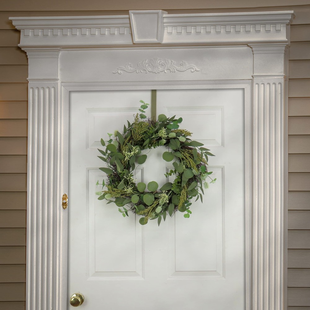 LIFELIKE ARTIFICIAL GREENERY WREATH: This greenery wreath is made with realistic eucalyptus leaves, baby's breath, and flowing green stems. This greenery home décor beautifully represents the colors and textures of spring, creating a cheerful and welcoming atmosphere for any room or front door. VERSATILE HOME DÉCOR: This leafy wreath is ideal for hanging on doors or windows as part of your spring or summer décor. It’s perfect for both entryways and living rooms, adding a botanical touch to your home. This summer wreath can also be hung in covered outdoor locations, bringing a festive touch to your porch, patio, or balcony. It’s also a charming addition to mantels, dining tables, or as a centerpiece for holiday-themed gatherings, enhancing any room with its vibrant, spring-inspired design. QUALITY MATERIALS: Crafted from high-quality materials, this summer wreath features a woven branch ring base, designed to maintain its beauty and integrity for years to come. The durable construction ensures it can withstand seasonal use, providing long-lasting, vibrant décor that retains its charm even after multiple springs and summers. Whether displayed indoors or in covered outdoor areas, this wreath is built to stand the test of time with minimal maintenance. EASY TO MAINTAIN: Simply take this summer décor out of the box and shape it to your desired look. No need for watering or pruning—this eucalyptus wreath requires minimal upkeep. Simply dust it once a month to keep it looking vibrant, fresh, and full of seasonal charm. FAUX GREENERY WREATH DIMENSIONS: 5”L x 22”W x 22”H, 1 lb. Perfect for both indoor and covered outdoor use, this eucalyptus wreath is a seasonal must-have for your home’s décor.