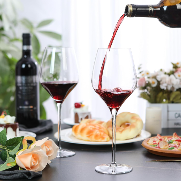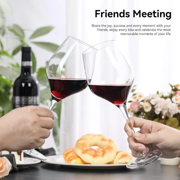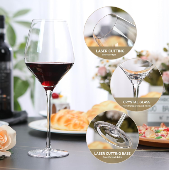 Wine Glasses, 22 oz Red Wine Glasses Set of 4, Hand Blown Premium Crystal Wine US Warehouse - FREE & FAST Shipping in US Product Description: Lead-Free Crystal Glass: These wine glasses are made in lead-free and durable glasses with stunning clarity. Its thin and lightweight bottle walls, sparkling appearance, crisp sound, and comfortable hand feel greatly enhance the flavor of the wine. Optimal Size & Dishwasher-safe: The 22-ounce oversized size is ideal for holding red wine; the handle is of moderate length, firmly grip and lightweight body allow the red wine to swirl more smoothly within it. Our red wine glasses are dishwasher-safe, eliminating the need for frequent wiping and making it easy to remove residual stains. Perfect Gift: whether for personal use or as a gift for others, our red wine glasses can meet your needs. It complements your home bar perfectly. It will become a unique gift to celebrate important moments in life, whether it's anniversaries, weddings, Halloween, Christmas, Thanksgiving, or couple dates, parties, or family gatherings. Traditional Hand Blowing: These Burgundy wine glasses are carefully crafted by experienced craftsmen with over ten years of professional skills, Ensured the lightness and transparency. The handle of the red wine glass is seamlessly connected to the bowl, and the rim is finely cut and polished,aims to enhance your every sip when tasting wine. Luxurious Gift Packing: wine glasses set of 4 are securely placed in high-quality pearl cotton to ensure their integrity during transportation. It comes with a premium black packaging box, so you don't need to repack them again.It is an exquisite gift that's worth giving. Feedback: 1.Any question for your order, please contact us in time, we will reply to you within 24 hours and give you a satisfactory answer. 2.If you are satisfied with our products and services, hope to take up your a little precious time to leave feedback reviews for our products.Thanks! 3.Your satisfaction is our effort. Welcome to order again! Have a great day! Our Policy: 100% Satisfaction Guarantee 20% of restocking fee will be charged for return item