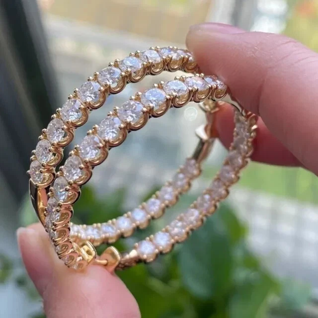 2.20 Ct Round Cut Simulated Diamond Womens Hoop Earrings 14K Yellow Gold Plated