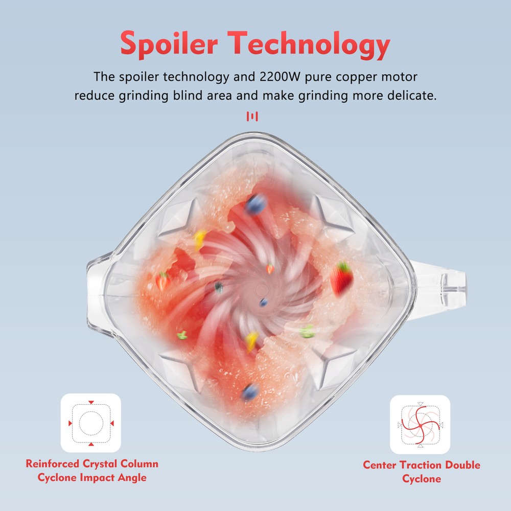 Smoothie Blender for Kitchen 2200W Professional Countertop Blenders for Shake US Welcome~ Commercial Grade Blender Smoothie Maker Fruit Juicer Vegetables Mixer 2200W 68oz Application It is suitable for grinding dry or wet ingredients to make various beverages, such as milkshakes, smoothies, sauces, ice creams, baby food, fresh juices, etc. for domestic and commercial use. How to Use Power on Sequence (from left to right): turn on the power, and adjust the gear. Shutdown Sequence (from right to left): adjust the gear back, and turn off the power. Specification Shell Material: ABS Mixing Rod Material: ABS Jar Material: PC Jar Base Material: Zinc Alloy Blade Material: 402 Stainless Steel Color: Red Mounting Type: Tabletop Noise: About 80db Speed Gears: 1-10 Ice-breaking Time: 15-25s Power: 2200W (Peak at 3Hp) Rotation Speed: 24000-26000rpm Plug: US Standrad Voltage: AC 110V, 60HZ Capacity: 2L/68oz Power Cord Length: 1.6m/5.2ft Mixing Rod Length: 30cm/11.8inch Jar Height: 28cm/11inch Base Size: 18*21*16.5cm/7*8.3*6.5inch Package Size: 28*32*40cm/11*12.6*15.7inch Gross Weight: 4.2kg/9.3lbs Net Weight: 3.65kg/8lbs Package Included 1*Countertop Smoothie Blender 1*Mixing Rod 1*English Manual Description The outstand smoothie blender is an efficient and versatile small kitchen appliance that instantly blends various ingredients into smooth smoothies, juices, milkshakes and other drinks. At the same time, the product's compact design does not take up too much counter space. With a powerful motor and sharp stainless steel blades, this product can quickly break up tough ingredients, making it easy to create delicious and healthy drinks. Key Features ??Sturdy Material: The jar's zinc alloy base, 402 stainless steel blade and ABS shell are corrosion-resistant, wear-resistant, heat-resistant, and high-strength to extend its service life. ??Fine&Thorough Grinding: The spoiler technology, reinforced crystal column cyclone impact angle, center traction double cyclone and 2200W pure copper motor reduce grinding blind area and make grinding more delicate. ??Sharp Cutting: Six 402 stainless steel blades with sharp teeth can efficiently break various food or ice cubes. ??Low Noise: The black anti-vibration cushion at the connection of the jar and the body makes it produce low noise (About 80db) during operation and allows you to enjoy delicious smoothies in a comfortable environment. ??Good Heat Dissipation: The heat dissipation holes at the bottom circulate the airflow inside to reduce the temperature and ensure the normal operation of the machine. ??Adjustable Speed: Its gear (low, medium and high) can be selected arbitrarily according to different foods for wider application. The low is suitable for crushing smaller and softer fruits, the medium for larger fruits, and the high for harder food, for example, nuts or ice cubes. ??Safety and Security: Overload and over-temperature protection ensure you enjoy healthy meals safely. If the jar is placed improperly, it will not start running and if the jar is lifted while running, it stops running to enhance safety. ??Self-cleaning Function: You only need to pour in water, turn on the switch and select the high gear to open the self-cleaning mode without any disassembly, making it more convenient to use. Details ??Control Panel: The panel includes long-acting switch, pulse switch (press and hold to instantly shatter food after turning on the machine, and then use the long-acting switch. It will automatically pop back to close if releasing and is suitable for large pieces of food or ice), and speed control knob (low, medium and high) for simplicity and clarity of use. ??Practical Base: Four non-slip feet ensure stable work without movement. Bottom cable management slot with clips firmly fixed line in order to organize the desktop and save space. ??Mixing Rod: The mixing rod can clean up the smoothie on the wall of the jar to reduce waste. It also allows for the even mixing of a variety of food after crushing. ??Jar Connection Port: The 12-tooth port guarantees a solid connection with the jar without easily loosening during use. Metal material is more durable and precise than plastic. ??Well-designed Jar: The 68oz jar is equivalent to 8 cups of water to provide a delicious smoothie for the whole family or restaurant. This BPA-free PC material can be used dry or wet, which is both safe and reassuring. The soft rubber embedded sealing cover prevents leaks and keeps the table clean. The clear lid in the middle allows for midway refilling. And the solid humanized handle ensures a comfortable grip. Double scale (Max. 2000ML, 68OZ) allows easy and precise addition. Notes 1.Please note that it can not be used for heating. 2.Please allow the slight color difference caused by the shooting light and 1-3 cm error due to manual measurement, and make sure you do not mind before ordering. Payment Delivery details Terms of sales About us Contact us Payment We accept ebay payment 。 Fees such as import duties, taxes are not included in the item price or shipping costs. These charges are the buyer's responsibility. Delivery details Shipping: 2-9 working days to: USA Terms of sales We maintain high standards of excellence and strive for hundred percent customer satisfaction. Feedback is very important to us. We hope that you contact us immediately before you give neutral or negative feedback, so that we can address your concerns. It is impossible to address issues if we do not know about them! About us Your satis faction is our ultimate goal. We work hard to earn your trust and future business. Our certified technicians have tested each item before shipping. The unit comes with 1 year limited warranty on all manufacturing defects. a) If you receive a defective item, you may return it or ask for a discount. Please contact us within 14 days after you receive the package. b) What you returned must be intact and in its original packaging as re? u. Customer is responsible for shipping co