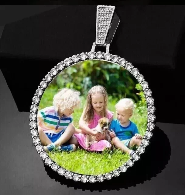 Brand: Omsai Jewels Metal: Sterling Silver Necklace Length: 18 in Number of Diamonds: As Per Image Pendant/Locket Type: Charm Wholesale: Yes Main Stone Creation: Lab-Created Department: Men Theme: Beauty Main Stone: Lab Created Moissanite Country/Region of Manufacture: Unknown Secondary Stone: Lab Created Moissanite Total Carat Weight: 2.20Ct Occasion: Anniversary, Birthday, Christening, Christmas, Confirmation/Communion, Engagement, Father's Day, Graduation, Mother's Day, Valentine's Day, Wedding Style: Pendant Type: Pendant Certification: No Material: Stone Number of Gemstones: As Per Image Features: Adjustable, Engraved Pendant Shape: Customize Memory Frame Picture Diamond Clarity Grade: Very, Very Slightly Included (VVS1) Personalize: Yes Color: White Signed: No Base Metal: Silver Main Stone Color: White Colored Diamond Intensity: Fancy Diamond Color Grade: D Gemstone Clarity Grade: Eye Clean Customized: Yes Closure: Spring Ring Cut Grade: Excellent Chain Type: Cable Metal Purity: 925 Handmade: Yes Main Stone Treatment: Not Enhanced Country of Origin: Unknown Main Stone Shape: Round Setting Style: Cluster