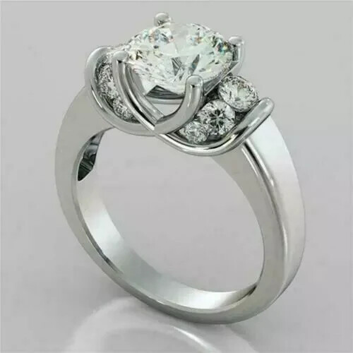 Elevate your special moments with the timeless elegance of this 2.20Ct Round Lab-Created Diamond Solitaire Engagement Ring, exquisitely crafted for a luxurious expression of love. Set in lustrous 14K white gold plating, the ring features a brilliant round-cut lab-created diamond that captures the light with every movement, complemented by additional lab-created diamonds along the band for that extra sparkle. With a metal purity that ensures both beauty and durability, this piece promises to be as enduring as your commitment. Designed with precision, the prong setting secures the dazzling main stone, boasting a total carat weight of 2.50CT, a clarity grade of VVS1, and a top-tier cut grade ensuring its radiant appeal. Whether it's for an anniversary, birthday, or any other significant occasion, this engagement ring is a sophisticated choice that will be cherished for a lifetime. Personalization options are available to make this ring uniquely yours.