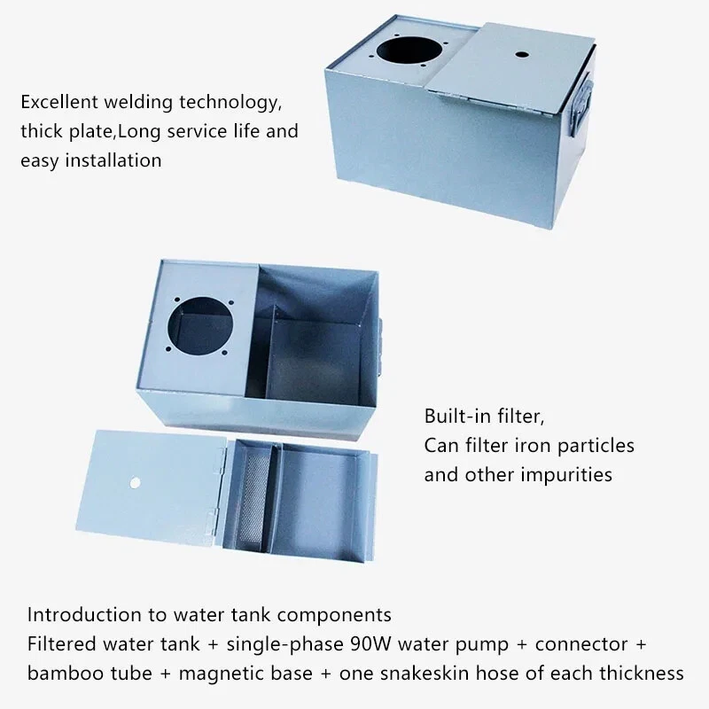220V 90W Household Machine Tool Cooling System Cooling Water Pump Built-in Filter Lathe Accessories Cooling Water Tank Name: Cooling water tank for lathes Condition: Brand new Shell material: iron sheet Rated power: 90W Rated flow:25L/min Rated lift: 4m Voltage:220V Packing size: 41X29X34cm Applicable to: all t ypes of lathes, milling machines and other machines, can filter iron filings and other impurities
