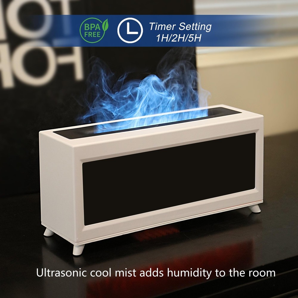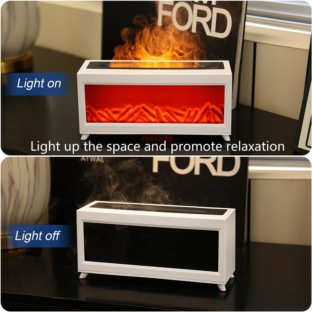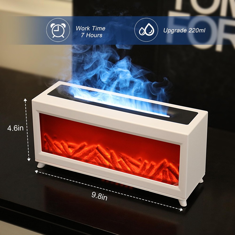 Use Our Essential Oil Diffusers To Create A Peaceful Space That Continuously Exudes A Soothing Fragrance. This Aromatherapy Diffuser Has Functions Such As Silent Operation, Timing, And Automatic Shutdown Without Water. It Is Suitable For Home, Large Room Or Office. It Can Not Only Humidify The Indoor Space, But Also Evenly Spread Various Aromatic Essential Oils Such As Lavender To Help Relax And Improve The Quality Of Life. A Simple And Modern Exterior Design Blends Perfectly With Any Home Style While Providing A Lasting Fragrance Experience. As A Thoughtful Health Gift, This Diffuser Allows You To Enjoy The Beauty Of Aromatherapy With Ease. Simulated Fireplace And Flame Atmosphere Light: The Simulated Fireplace That Can Be Turned On/Off Is Matched With Realistic Atmosphere Flames. It Is A Combination Of A Bonfire Diffuser And A Air Diffuser, Which Can Create A Warm And Romantic Atmosphere For You, Whether It Is Day Or Night. All Can Add Comfort And Elegance To The Room. Remote Control, Thoughtful Design: The Diffuser Is Equipped With A Convenient Remote Control, You Can Easily Remotely Control The Switch, Light And Timing Settings (60/120/300 Minutes). The Humidifier Automatically Stops Working When Water Is Short, Thus Protecting The Equipment (The Simulated Fireplace Light Needs To Be Turned Off Manually). Low Noise, Suitable For Many Scenarios: The Essential Oil Diffuser Includes A 1.5-Meter-Long 24v Power Adapter To Ensure The Stable Operation Of The Equipment, Suitable For Various Environments Such As Home Bedrooms, Living Rooms, Gyms, Offices, Etc. The Diffuser Low Noise Design Allows You To Rest, Work, Study Or Exercise In A Quiet And Comfortable Environment Without Interruption. Safety Material: It Uses PP+ABS Material, Built-In Hardware Motor And Fan, Extends The Service Life Of The Diffuser。 The 220ml Water Tank Capacity,Just Add 3-5 Drops Of Your Favorite Essential Oil To Promote Relaxation And Enhance Your Environment, Is A Very Good Gift For Friends And Family. Multifunctional Design: This Diffuser Covers The Functions Of An Aromatherapy Machine And A Small Humidifier, Adding Humidity And Scent To The Room. Combining Simulated Flame Lighting And Aromatherapy Functions, It Brings You Multiple Enjoyment Of Vision, Smell And Touch.