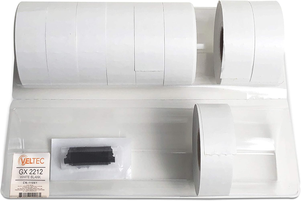 Store New Arrivals Add to Favorite View Feedback 2212 White Pricing Labels for Garvey (22-6, 22-7, 22-8) and Contact (6.22, 7.22, 8.22) One-Line Price Gun/Labelers, Free Ink Roller – 9 Rolls, 11,000 Labels with Security Slits Description Item model number VLX2212W Number of Items 1 Color White, Black Brand Veltec Material Paper Material Type Paper Manufacturer Part Number VLX2212W Item Weight 1.1 pounds Shape Rectangular Manufacturer Veltec, LLC Finish Type Adhesive Product Dimensions 2.5 x 2.5 x 7.5 inches Size 22 x 12 month Made in the USA - Premium Quality - 22 x 12 mm 9 white rolls - enough to price 11,000 items Comes with one free black ink roller Fits Contact label guns 6.22, 7.22, 8.22 Fits Garvey G-series price guns including 22-6, 22-7 and 22-8 Fits one line price gun with labels 2212 (12mm x 22mm) Strong adhesive labels with tamper proof slits These labels are not made or sponsored by Garvey Products, Inc Product Description Veltec 2212 White Labels - Made in the USA!! Our paper comes from mills in Wisconsin. We then convert, slit, print, and die cut at our facility in Elk Grove Village, Illinois. Veltec premium USA Made pricemarking labels compatible with Contact label guns 6.22, 7.22, 8.22 and Garvey G-series labelers including 22-6, 22-7 and 22-8. Veltec 2212 blank white gun labels come in 9 sleeves, 11,000 labels with strong adhesive and security cuts. Each sleeve comes with free black ink roller which fits Garvey and Contact pricemarking guns. These labels have been precision cut to 22mm x 12 mm (“55/64" X 15/32")” *These labels are made by Veltec for use with Garvey Labeler. They are not made or sponsored by Garvey Products, Inc. ABOUT US We offer the best prices around on high quality products. Our E-store includes media such as books, movies, music and games while offering electronics, toys, sporting apparel, clothing, tools, general home, garden items and more. SHIPPING We are always working hard to ensure your package arrives as soon as possible. Please understand that some factors like weather, high postal traffic, and the performance of shipping companies are outside of our control. We offer free shipping to the lower 48 states and ship within 2 business days of payment, usually sooner. We do not accept P.O. Boxes. Please provide a physical address. RETURNS We offer a 30-Day Return Policy on items which you are not completely satisfied with. You have the option for a full-refund or an exchange of the item. No returns are available on items shipped outside of the USA. PAYMENT We accept PayPal. CONTACT US This page content is yet to come Please ad us to your favorite seller and visit again later Thank You