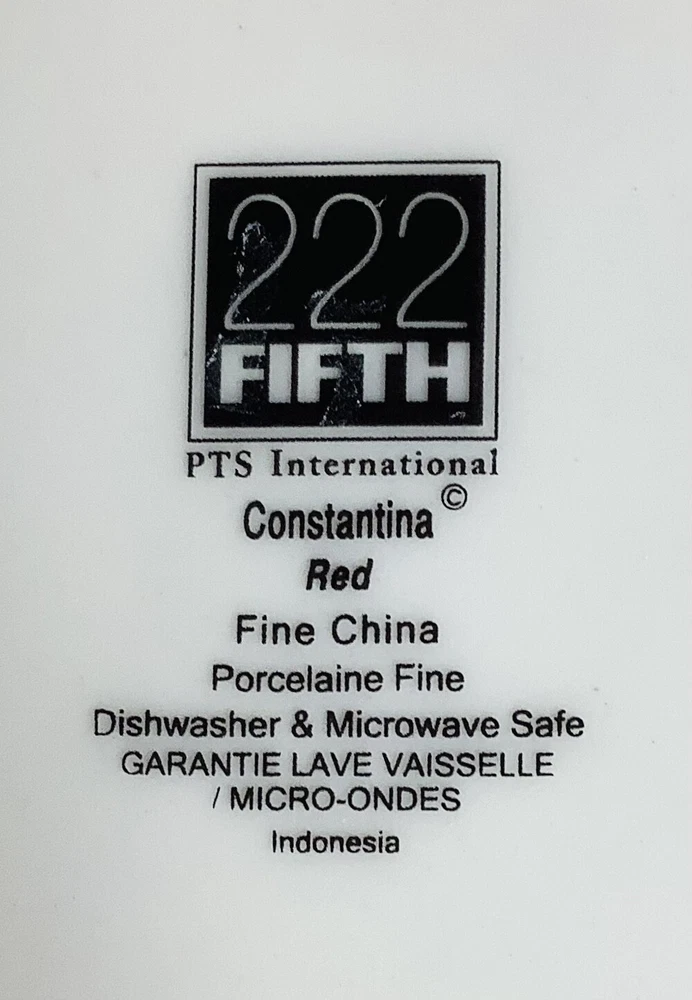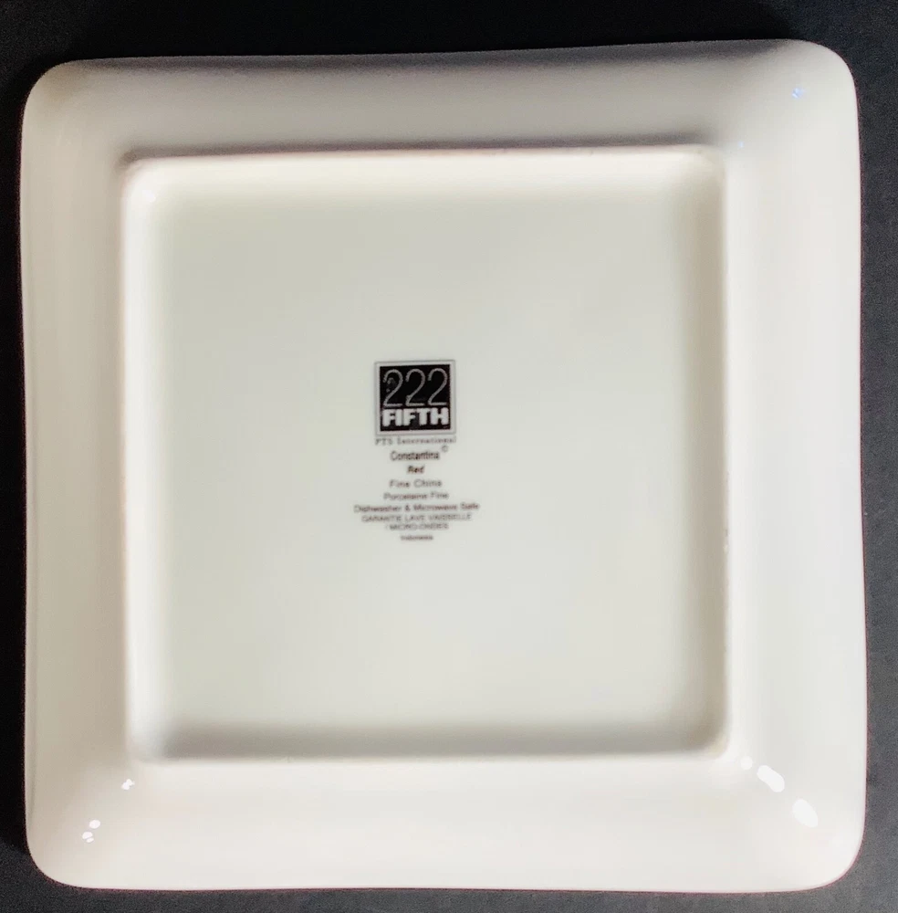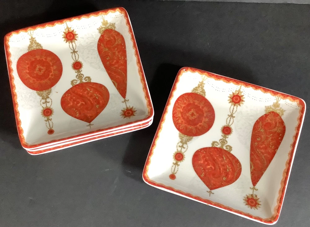 222 Fifth Constantina Red Salad Plates Set of 4 Christmas Ornaments NWOB * Product Notes: Set of 4; new without the box; 3 Red and gold ornaments on each plate; perfect for bread, salad, and/or dessertPorcelainDishwasher and microwave safeMade in Indonesia Size - 6.5” L x 6.5 “ W * Returns Accepted: If you are not satisfied with your purchase, contact me before leaving negative feedback. I am dedicated to buyer satisfaction and am happy to work with you to resolve any issue. Any return must be in the same condition as when purchased and buyer pays return shipping. * If you have any questions send me a message. I will get back to you as soon as possible. PLN: Rack 3