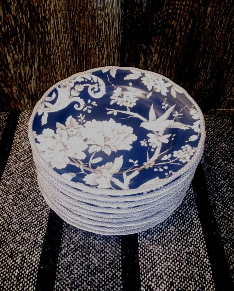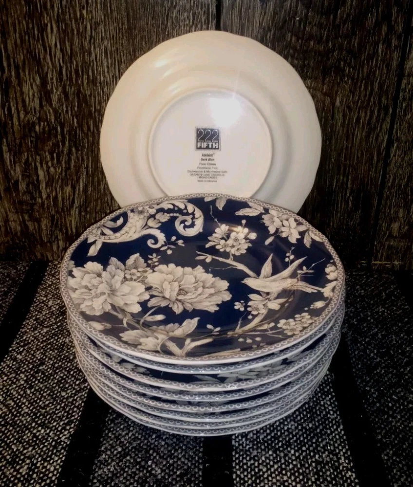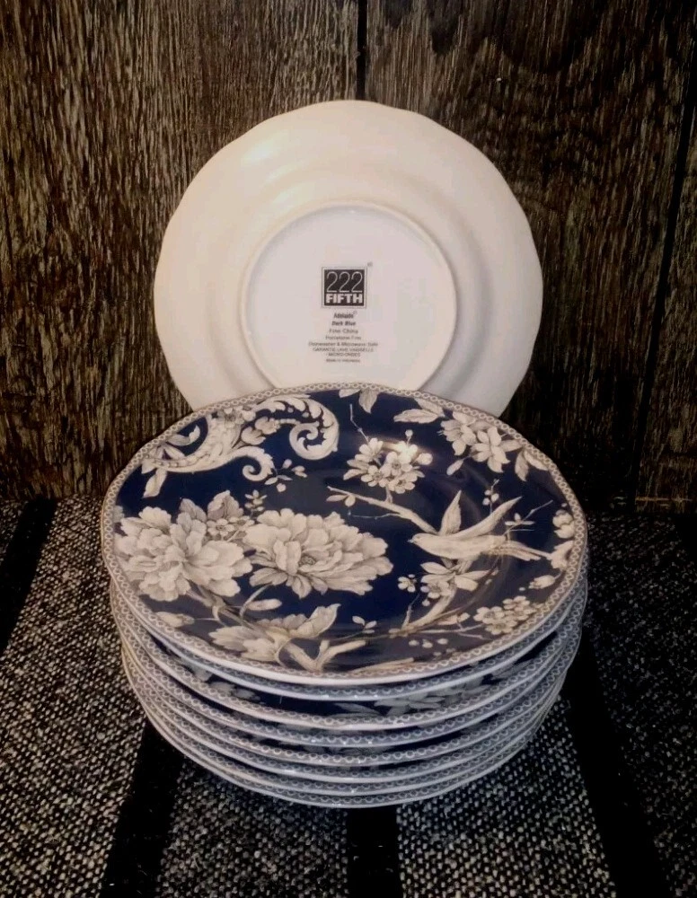 Add a touch of elegance to your dining table with this set of four round salad plates from 222 Fifth. The plates feature a beautiful Adelaide pattern with a glossy finish, perfect for all occasions. The plates are microwave and dishwasher safe, making them easy to use and clean. Crafted from high-quality porcelain, these plates are durable and perfect for everyday use. The set includes four plates with a length of 8.5" and a width of 8.5". The plates are part of the Cottage product line, manufactured in Indonesia using pottery techniques. The set comes with care instructions, and the plates have a printed backstamp.