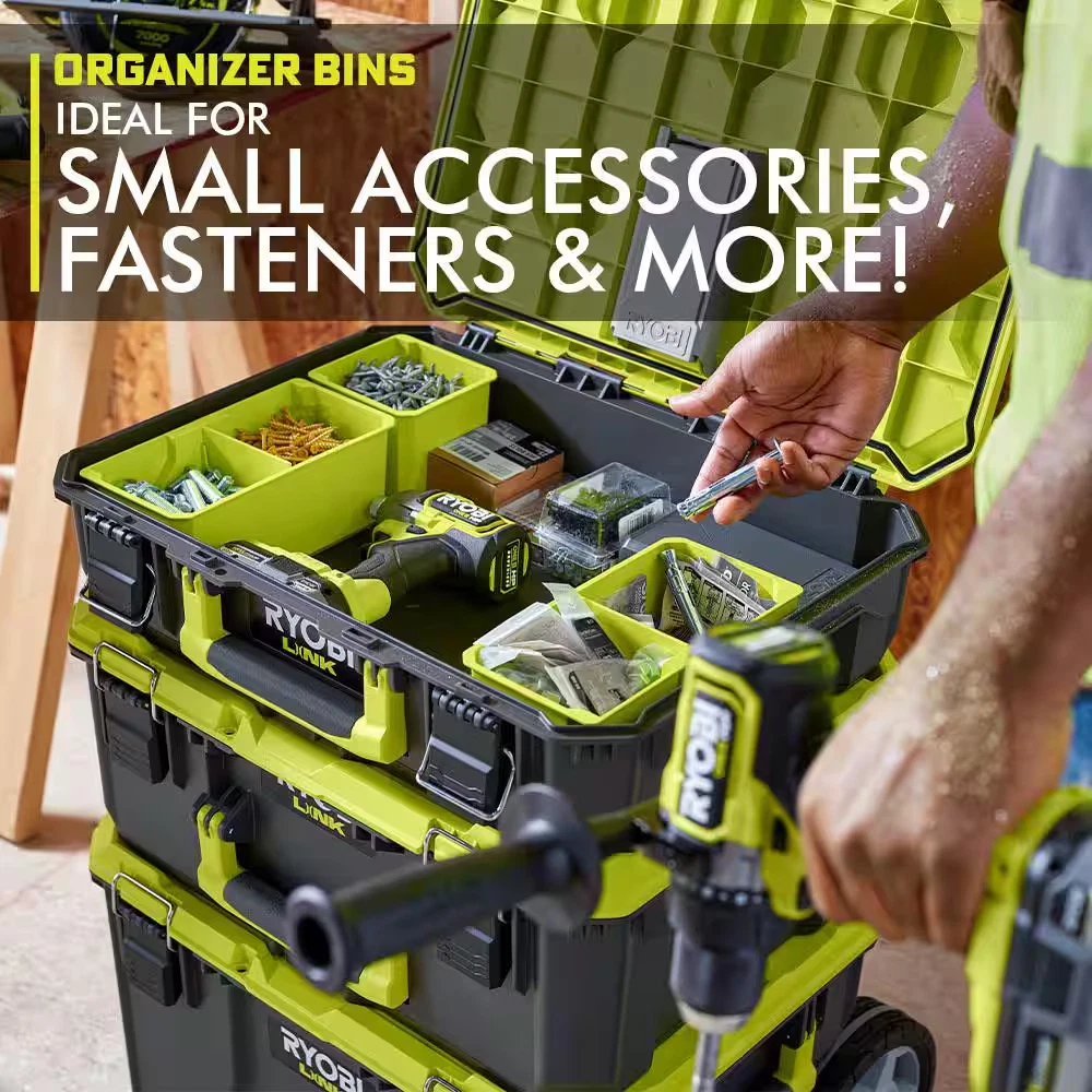 Fast Shipping On All Items 30 Days Money Guarantee Customer Support Excellent Service 100% Satisfaction Satisfaction Guaranteed 22.2 In. LINK Rolling Tool Box with LINK Medium Tool Box Specification Color Family Green Color/Finish Green Features Handles,Lockable,Pre-Assembled,Wheeled Holding Capacity (cu in) 3465 cu in Included Accessories Latches,Push Handle,Wheels Material Plastic Modular Storage Type Rolling Tool Box Modular System Type LINK Product Weight (lb) 10 lb Returnable 90-Day Tool Box Type Modular Tool Box Tool Storage Product Type Modular System Tools Product Type Tool Storage Weight Capacity (lb) 200 Maximum Handle Length (in) 43.5 in Product Depth (in) 20.6 in Product Height (in) 29.3 in Product Width (in) 22.2 in 22.2 inches x 20.6 inches x 29.3 inches. Weight: 10.0 lb Item Description LINK Rolling Tool Box Features Telescoping Handle & 9 in. Wheels Includes: LINK Medium Tool Box Compatible with RYOBI LINK Modular Storage System The RYOBI LINK Modular Storage System is revolutionizing the storage industry, enabling you to Organize, Access and Transport your life. The RYOBI LINK Rolling Tool Box is designed with impact resistant material to handle the toughest of situations. It has a wide, steel telescoping handle and 9 in. all terrain wheels that support a 200 lb. load capacity. This Rolling Tool Box is IP65 rated to protect your items from water and dust in any environment. The integrated RYOBI accessory bit storage and included Double Organizer Bin provides maximum organization. Easily secure your items with a locking point and integrated tie down anchors. The RYOBI LINK Medium Tool Box is designed to handle the toughest of situations with impact resistant material and an 80 lb. load capacity. This Medium Tool Box is IP65 rated to protect your items from water and dust in any environment. Best of all, it is part of the RYOBI LINK Modular Storage System line of products that use the same locking technology to seamlessly connect your mobile and stationary storage needs. Own your space with RYOBI LINK Modular Storage System. About us We offer the best prices around on high quality products. Our E-store includes media such as books, movies, music and games while offering electronics, toys, sporting apparel, clothing, tools, general home, garden items and more. Shipping We are always working hard to ensure your package arrives as soon as possible. Please understand that some factors like weather, high postal traffic, and the performance of shipping companies are outside of our control. We offer free shipping to the lower 48 states and ship within 2-3 business days of payment, usually sooner. We do not accept P.O. Boxes. Please provide a physical address. For shipping outside of the continental USA, we only use eBay's Global Shipping Program.The item is shipped to KY and then sent to the rest of the world. International customers are responsible for all duties and taxes. Continue to check out to calculate costs for shipping the item to your country. Messages regarding eBay's Global Shipping Program MUST be directed at eBay EXCLUSIVELY. Returns We offer a 30-Day Return Policy on items in which you are not completely satisfied with. You have the option of a full-refund or an exchange of the item. No returns are available on items shipped outside of the USA Satisfaction We try over very best to make sure every customer is completely satisfied. If there's a problem, message us! We're happy to help. Payment Options Shop With Confidence