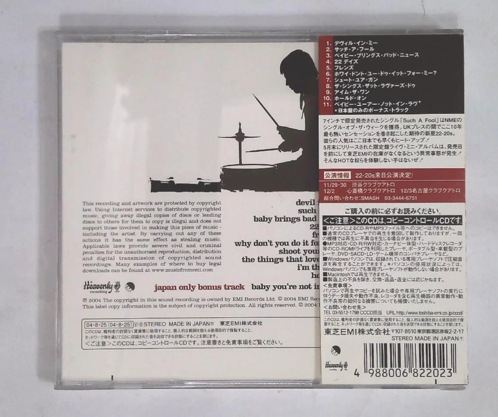 Record Label: EMI gtin13: 4988006822023 Style: Alternative/Indie Release Title: 22-20s Format: CD UPC: 4988006822023 Genre: Alternative, Rock, General, Rock & Pop Artist: 22-20s Release Year: 2004