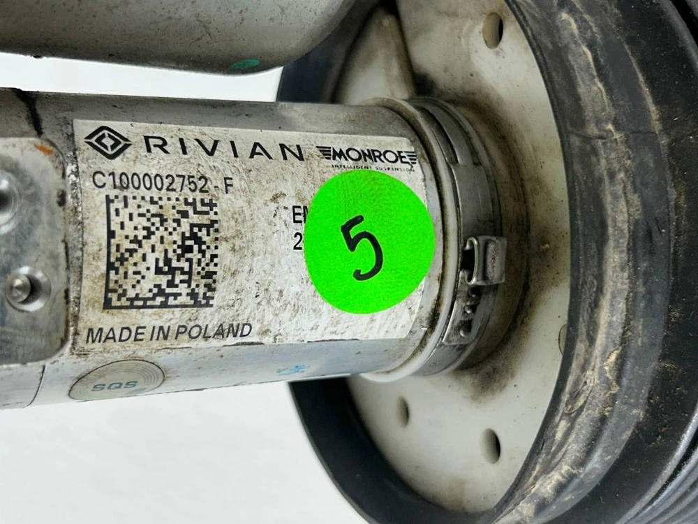 The product is a front right air suspension shock strut absorber specifically designed for the 22-24 Rivian R1T vehicle. This OE/OEM part number, C100002752-F, is manufactured by Rivian to ensure a perfect fit and reliable performance. The placement on the vehicle is the front right side, providing suspension support and stability for a smoother driving experience.