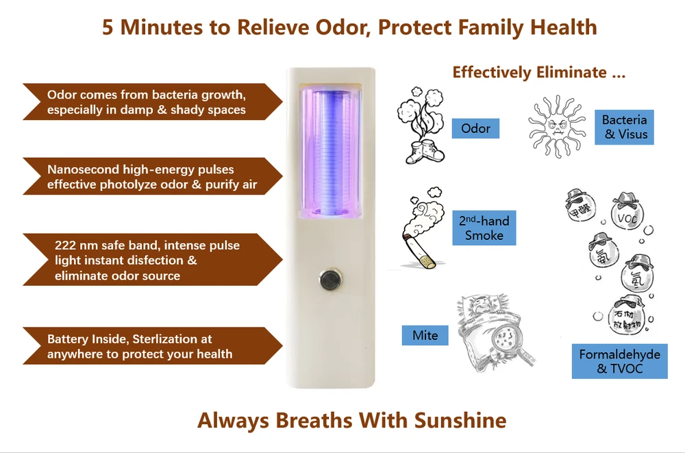 222nm Far UVC Deodorization and Sterilization Lamp(Portable with Battery Inside)