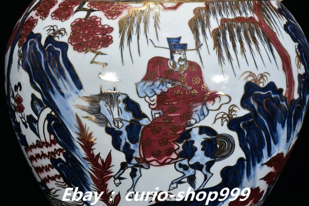 **** Welcome to our antique & Collectable Shop : Porcelain**** Description: Here is 22.4" Yuan Dynasty Blue White Red Glaze Porcelain Gold Guiguzi Crock Pot Jar. It is in good condition, and was created by skilled craftsmen in traditional style with fine handcrafts.This is a great piece of valuable collection, a valuable personal alter or a very good present. the handwork is very fine with incredible detailling. Don't miss out this chance to get it.Wish you good luck! . Material : Blue White Red Glaze Porcelain Gold Style : Same as photos showing Size : Heigh t 22.4 Long 15.3 B readth 15.3 (inch) Condition Perfect Condition. Perfect, with no scratches, flaws or repairs. Weight: 18 KG----included the weight of packing materials Shipping cost to all over the world countries in Free Honored Customers: We are selling the collectibles products and crafts in Beijing ,China since 1993 and collected them all over the world all the time . In our shop the bronze sculpture, animal, vase, urn, flowerpot,Incense Burner.Table chair sets. Militaria goods. buddha statues, Bodhisattva Statues, Buddhist Ritual Items etc is our speciality .Many of the items we sell come from our own personal collection and have been in our family for a very long time .My great-grandfather was the first in this family to start collecting art & antiques when he still lived in San Xi and Tibet around 1922 ,some of the paintings he once collected can now be seen in museums around the globe.We won't make money from t he shipping cost, if you dislike the item when you receive it,we can refund all of your money to you within thirty days. Please confidence for bidding . 70 We recommend the combine shipping and offer you an big price discount if you order more items together ! 2025.1.23 四 号