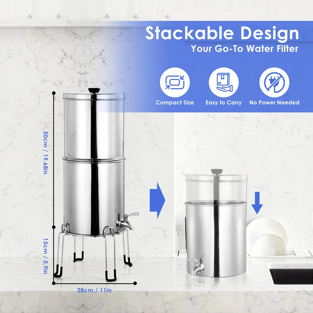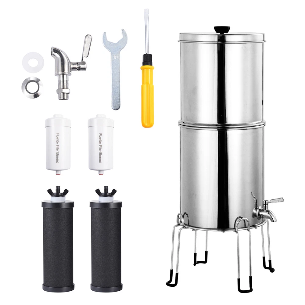Store category Sign Up Now ! You may also like Product Description Bullet Points: Large Family Hydration Solution: With a 2.25-gallon capacity ensuring clean, well-maintained water, this stainless steel water filter delivers drinking water safety and cleaner, better-tasting water, ideal for family use Excellent Filtration Performance: Designed with excellent 304 stainless steel shell, our water filter combines fine craftsmanship and durability to improve the taste of your home drinking water, elevating it to new levels of flavor and refreshment Advanced Filtration: Our stainless steel water filter uses safe materials and an 8-stage composite filtration system to efficiently remove chlorine and reduce pollutants, providing clean and safe drinking water for you and your family Effortlessly Filter Water: Boasting an upper and lower container design with 2 filters, spigot, and a stand, this stainless steel water filter simplifies the filtration process and installation. No more struggling with complicated setup or difficult operating, this filter is designed to make your life easier Energy-saving Design: Our stainless steel water filter provides an energy-saving and cost-effective design that requires no electricity. With its suitability for both indoor and outdoor use, it is an economical choice for households and individuals looking to a sustainable solution to clean drinking water This stylish and durable stainless steel water filter pitcher has a 2.25-gallon capacity, making it perfect for large families. It can comprehensively reduce pollutants found in water, ensuring pure, clean drinking water. The energy-saving design simplifies the installation process, making it easy to set up and use. Specifications: Product Name: Stainless Steel Water Filter Material: Stainless Steel Applicable Temperature: 32°F -90°F/0-32.2°C Flows Rate: 4 Gallons/Hour Filtration Life: 6000 Gallons Capacity: 2.25 Gallons Packing List: 1x water tank 2x filter element (CB and UF 6000 Gallons) 1x stainless steel faucet 1x stainless steel bottom covered with rubber bracket Payment Delivery details Terms of sales About us Feedback & DSRs Payment Before you palce an order, please kindly make sure that you have a paypal account. We accept PAYPAL payment only. Payment should be completed within 2 days after auction closed, or unpaid dispute will be filed for an closing auction. An unpaid case will be filled after 4 days. Delivery details We ship to your eBay address. Each package will be shipped to US by UPS Regular Parcel with tracking number. Please check your shipping address carefully before checkout, it can't be changed if order completed. All items will be shipped within 1-2 business day upon receipt of payment.Orders placed on weekend will be shipped within 3 days. If you do not receive your item in 7-10 business days.please contact us immediately for further assistance. We will be responsible for any damages or losses incurred in the shipping process. About us We maintain high standards of excellence FIVE STAR and strive for 100% customer satisfaction! Positive Feedback is very important to us. We hope that you contact us immediately Before you give us neutral or negative feedback, so that we can satisfactorily address your concerns. We promise to offer the lowest price and high quality produce. Our working time: From Monday to Friday(9:30 am to 18:00pm), we don't working on holidays ,hope you can understand and know that , thank you. Please always talk to us via ebay Message. We appreciate your business and look forward to growing our e-Bay sales with satisfied customers. Feedback Contact us If you have any questions, please feel free to contact with us by ebay Message during our business hours ( 9:30a.m. to 5:30 p.m.), or email us through eBay, we will try our best to help you to resolve it. For any presale or after-sale questions,please do feel free to email us! Due to the time difference, each email will be replied within 1 working day,and weekend will be delayed a bit. Feedback