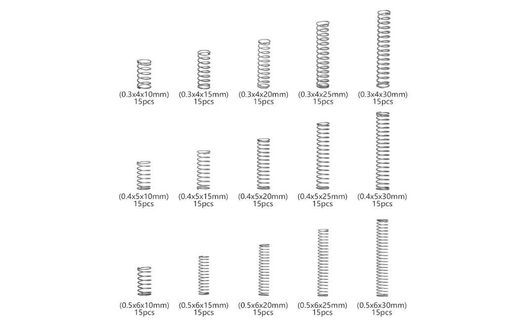 225Pcs Small Compression Spring Assortment 15 Different Sizes Wire Diameter Easy storage: The springs are neatly packed in a clean, transparent box.These springs in each grid has a corresponding size mark, which is convenient for you to pick and place. We always care which size you really need. We choose 15 different sizes which you may need from thousands sizes. 304 Stainless steel: which can not rust in humid environment and have strong oxidation resistance, acid resistance and corrosion resistance. 15 Kinds Size: the first one is wire diameter, second is outer diameter, 3rd is overall length. 0.011"x0.16"x0.39", 0.011"x0.16"x0.59", 0.011"x0.16"x0.79", 0.011"x0.16"x0.99", 0.011"x0.16"x1.18", 0.016"x0.2"x0.39", 0.016"x0.2"x0.59", 0.016"x0.2"x0.79", 0.016"x0.2"x0.99", 0.016"x0.2"x1.19", 0.02"x0.24"x0.39", 0.02"x0.24"x0.59", 0.02"x0.24"x0.79", 0.02"x0.24"x0.99", 0.02"x0.24"x1.19" International products have separate terms, are sold from abroad and may differ from local products, including fit, age ratings, and language of product, labeling or instructions.