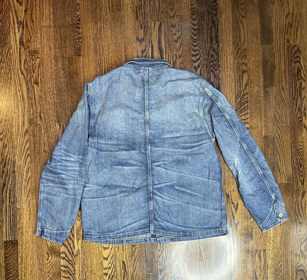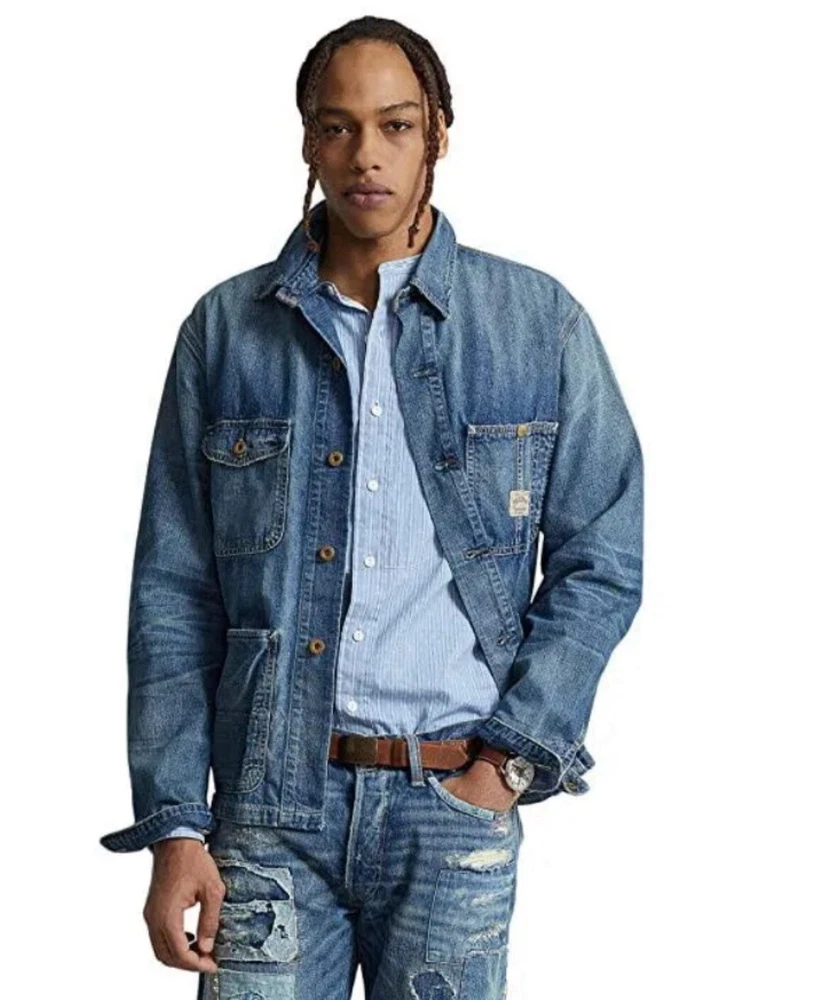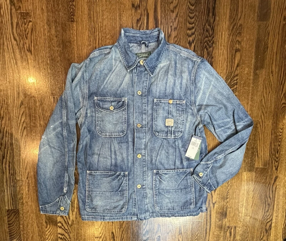 $228 Polo Ralph Lauren Denim Chore Jacket - Richland Men’s Size Large Trucker The jacket is made of high-quality denim material and comes in a stylish blue color. It is a regular fit and mid-length, making it suitable for various occasions such as travel, casual wear, and workwear. The jacket is part of the Polo Denim & Supply product line and is designed by Ralph Lauren Polo D & S. It is a great addition to any wardrobe and is sure to make a statement.