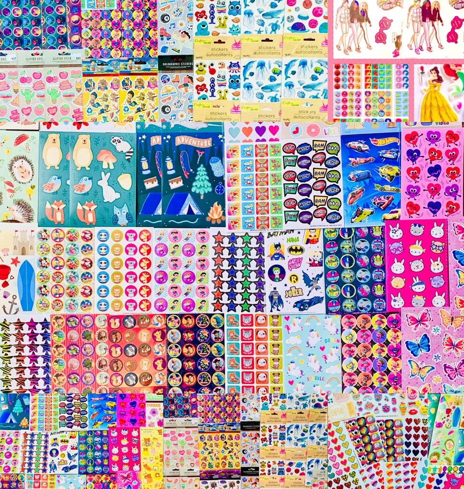 HUGE Mixed Sticker Lot | The Ultimate Kit | Qty. 2299+ Stickers | High Quality Only! Fun Quality Assortment of Puffy, Scrapbook, Cartoons, Bubble, Pop Up, Laser, Metallic, Vinyl, Glitter, Glossy Stickers! You will receive 69+ Sticker Sheets of beautiful colorful STICKERS! I have included a large variety of pictures of the assortment available. The pictures give you an idea of what you will be receiving. Please Note: You will not receive everything pictured. Please contact me with any special requests.