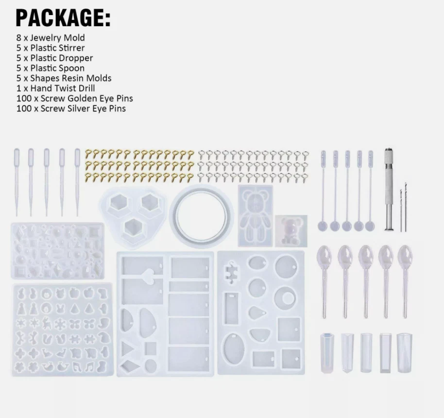 229pcs Resin Casting Silicone Molds Epoxy Spoon Kit Jewelry Making Pendant Craft Product Feature π Material : High quality silicone resin jewelry molds material of silicone, which is flexible and smooth . Screw eye pins are made of metal alloy, stirrers, droppers and spoons are made of quality plastic. π Contains with Various Shapes : 229 pieces in total π Easy to Use and Clean : Many operating tools, help you make them more easily.Silicone material for easier cleaning. π Various Shapes : There are more than 100 various designs of resin molds include star shape, round shape, heart shape, letter, cubic shape, bracelet shape and bear shape, allow you to DIY your jewelry in different shapes easily. π§‘ Wide Applications : This re-usable resin casting mold set is a good choice for you to share your handicraft with your friends and family, enjoy your happy times together. Can be applied to DIY different handiwork and jewelry, such as key chain, earrings, necklaces, pendant, bracelets and more. Product Specification Type Resin Casting Molds Kit Material Silicone, plastic, metal Quantity 229pcs Color Clear Screw Eye Pins Color Gold, Silver Size As the picture shows Package Included 229pcs/set Payment Delivery details Terms of sales About us Contact us Payment We only accept several paymeny ways as follow: PAYPAL Delivery details All orders will be sent within 24 hours .And please allow 3-5 business days for delivery of order. Terms of sales Return: We accept return within 30 days,but we are not responsible for human damage. About us We are selling all kind of ceiling fan,crystal chandelier,pendant lights in high quality with best discounted price. Our goal is providing all our customers 100% satisfaction and best customer service. Contact us If you have any questions please contact us through "Ask seller a question" link. We will respond within 1 business day or less.
