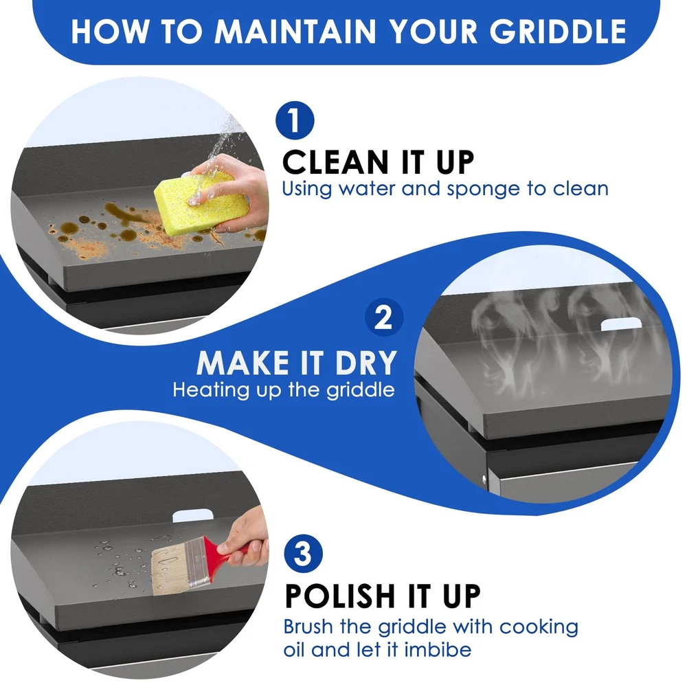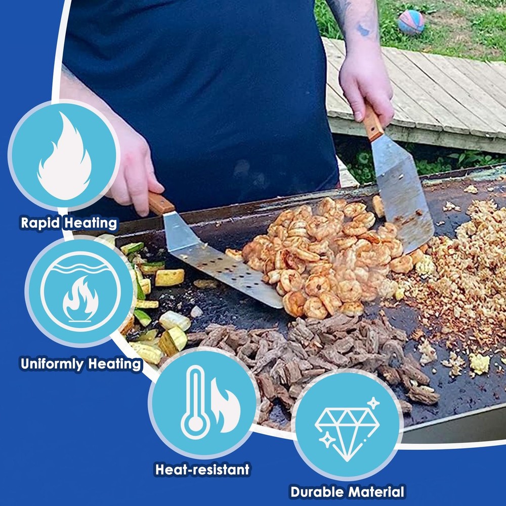 22" Flat Top Griddle Replacement Top for Blackstone 22 inch Tabletop Griddle, Food-grade Non-stick Coating Replacement Top use Original Integrated Grease Management for Blackstone 22" Grill Top Griddle Compatible Models: Perfect Fit for Blackstone 22 inch tabletop griddle. Features: ✅Designed specifically for the Blackstone 22-inch Countertop Grill Pan to ensure a perfect fit and outstanding performance. ✅Equipped with a food-grade non-stick coating to ensure even heating of food and easy cleanup. ✅Thoughtful non-stick coating makes it easy to get rid of stubborn residue, allowing you to cook and clean with ease. ✅Helps you achieve professional cooking results with ease and enhance your outdoor cooking. Reliable Customer Service: We are committed to ensuring your satisfaction with our product and are ready to address any concerns or inquiries you may have. High-Quality Flat Top Griddle Replacement Top. Upgrade your 22 inch griddle top with our 22" Blackstone Flat Top Griddle Replacement Top with Rear Grease System. Crafted with durable materials, this top ensures even heat distribution and easy cleanup, enhancing your cooking experience. Perfect Fit for Blackstone 22 inch Griddle. Designed specifically for the most Blackstone 22 inch Tabletop Griddle with Rear Grease System. Replacement parts for Blackstone 1813 1666 1891 1833 1840 1842 2166 1895 grill replacement parts and more, this replacement top provides a seamless fit and exceptional performance. (Does not fit Blackstone 22" combo grills) Note: Our griddle replacement flat top will fit your blackstone griddle, but not necessarily the Griddle Lid. Easy to Install: Designed for hassle-free installation, this replacement top for the blackstone 22 inch tabletop griddle is easy to set up, so you can get back to cooking delicious meals in no time. Versatile and Convenient: Whether you're cooking up pancakes, burgers, or stir-fry, this 22" Replacement Top offers versatility and convenience for all your culinary creations. Cooking Oil Protection: Product surface coated with a layer of cooking oil to protect, after receipt, please wash and seasoning after use, did not wash and use black is a normal phenomenon, will not cause harm to the human body. Color Variations: It's normal for the surface color to vary upon arrival. Some areas may appear darker due to the oil drying over time, but rest assured, this does not affect safety or quality. Enhance Your Griddling Experience. Elevate your outdoor cooking game with the 22" Flat Top Griddle Replacement Top. Whether you're grilling up breakfast, lunch, or dinner, this high-quality accessory for your 22 inch blackstone griddle for grill top will help you achieve professional results with ease.